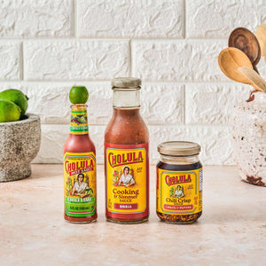 Experience the rich, bold flavors of Mexico with New Cholula® Cooking, Marinade, Simmer and Topping Sauces. Our unique blend of delicious chiles, tomatoes, herbs, and spices has been crafted to elevate your favorite dishes.