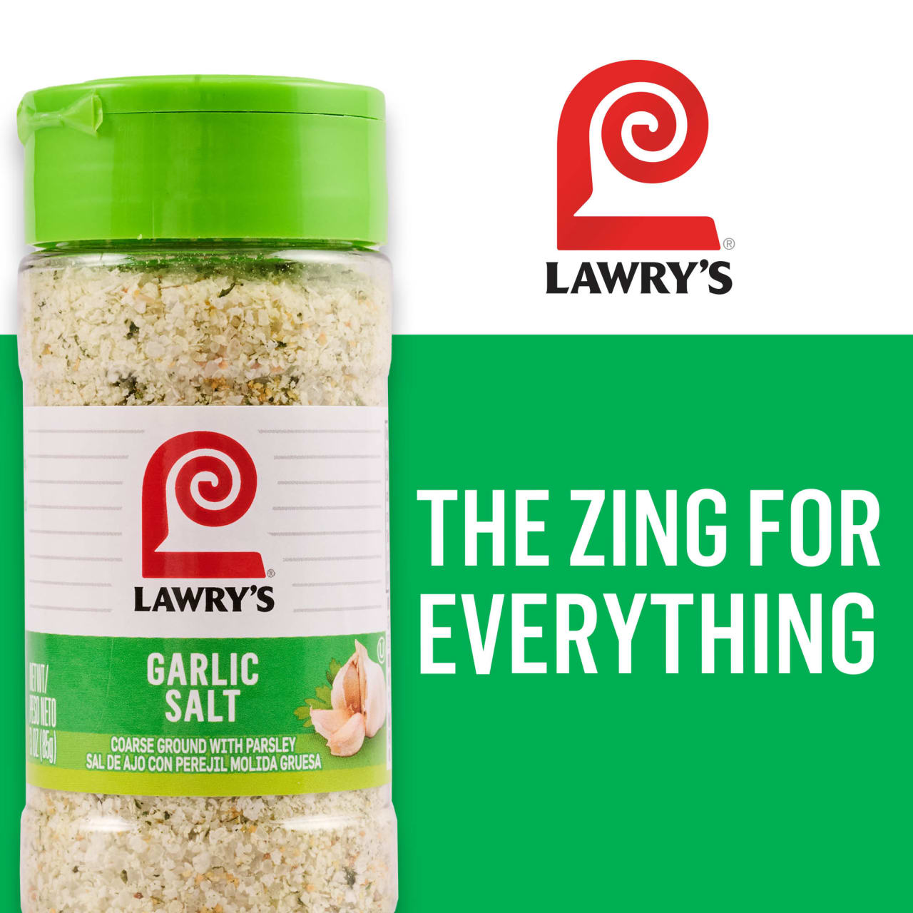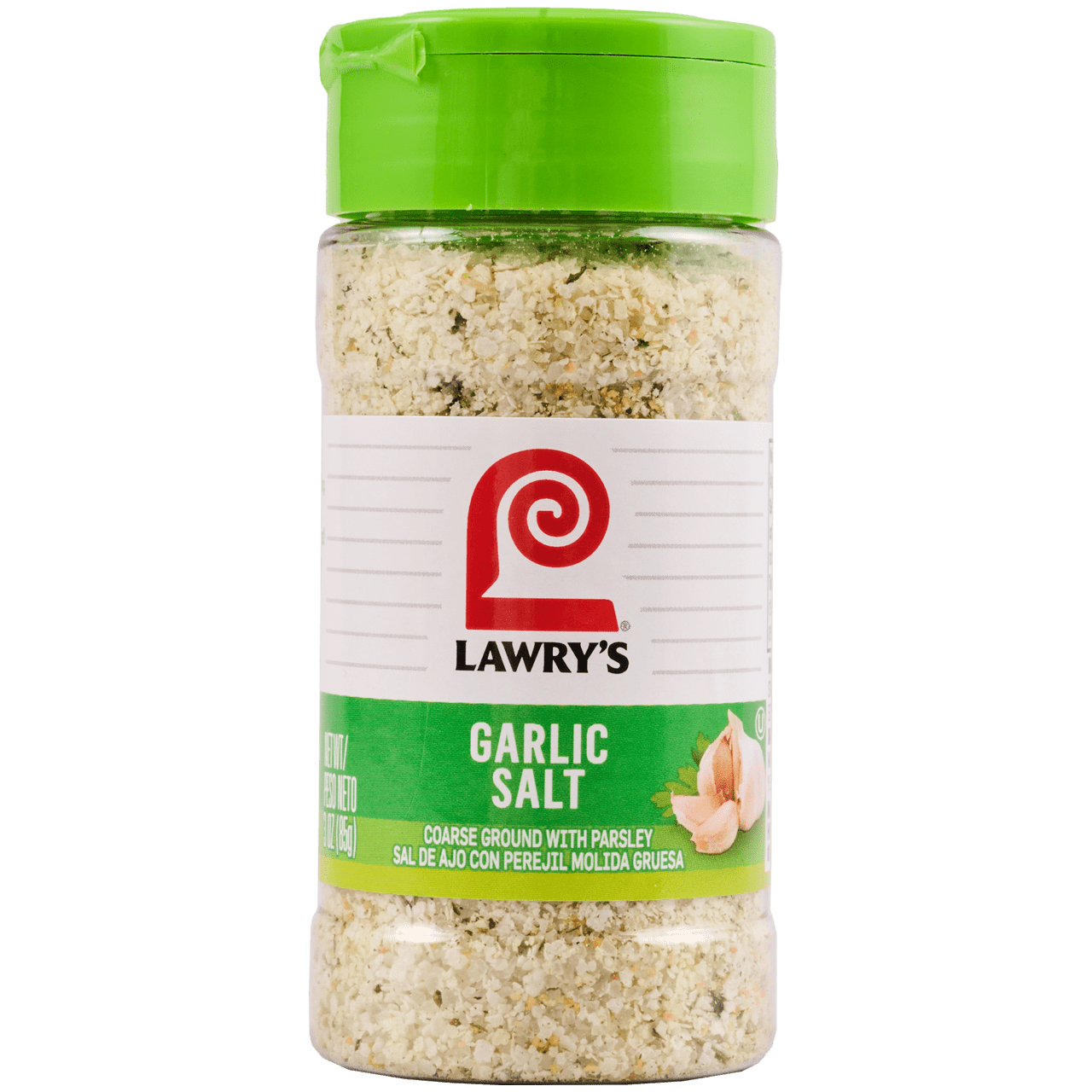 - COARSE GROUND: Lawry’s Coarse Ground with Parsley Garlic Salt is a mix of coarse-ground garlic, salt, and parsley flakes.