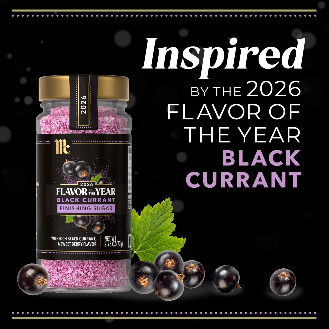 - SEASONING & SUGAR: Bring the McCormick 2026 Flavor of the Year, Black Currant, to life with two exciting new ways to cook, create, and explore: Sweet & Smoky Naturally Flavored Black Currant Seasoning and Black Currant Finishing Sugar.