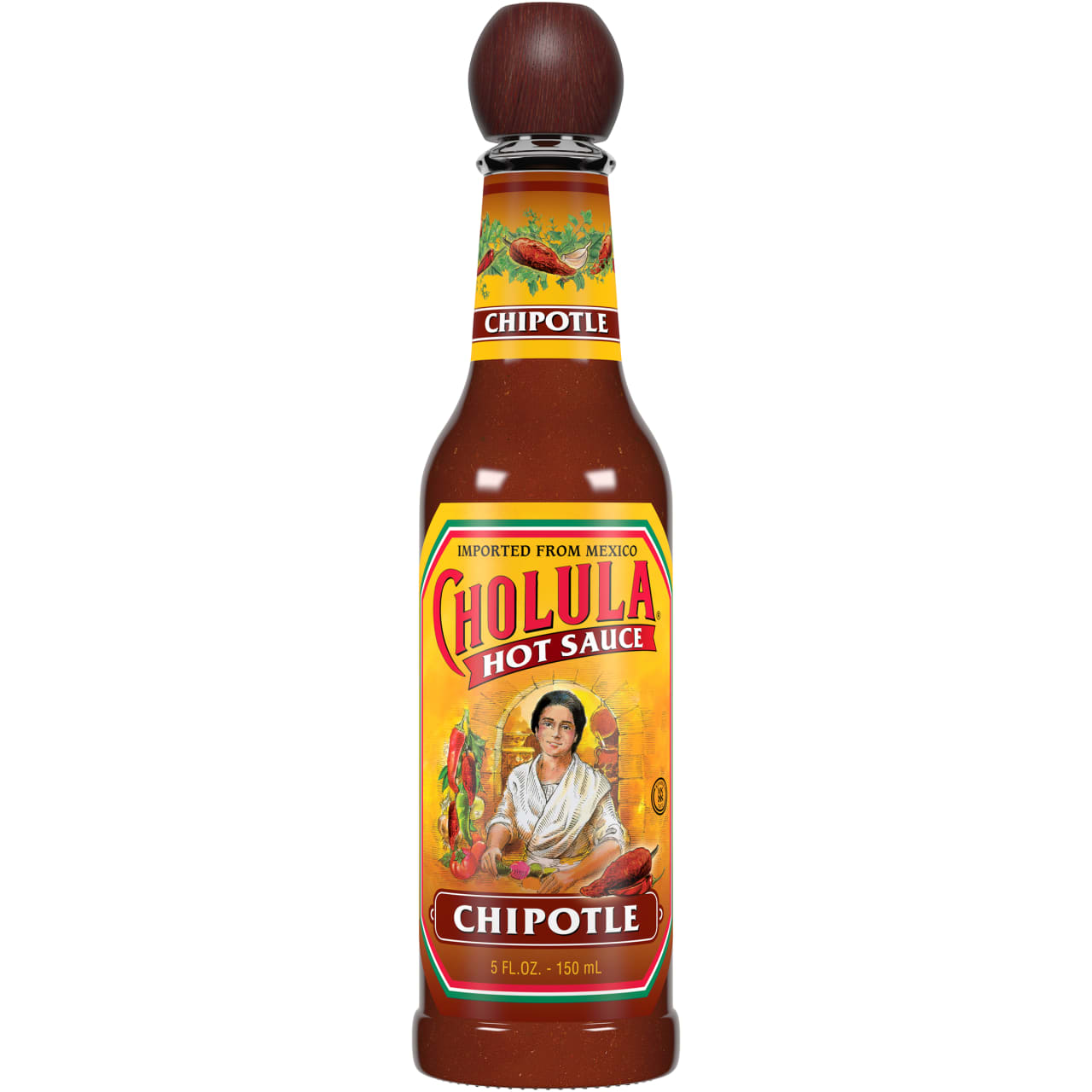 For distinctive smokiness with a touch of heat, uncap Cholula Chipotle Hot Sauce. We've blended sweet, smoky chipotles with arbol & piquin peppers and an infusion of our signature spices for a Mexican hot sauce that offers rich flavor and deep color. Taste the best life has to offer with Cholula Chipotle Hot Sauce. With mild heat and sweet & smoky flavor, try in your favorite pork carnitas or as a topping for burritos, tacos or even omelets! We love it on anything coming off the grill, including chicken, steak, burgers, kabobs and vegetables. From our distinctive wooden cap to the smoky hot sauce inside, every bottle of Cholula is a celebration of great food, flavor and our Mexican roots.