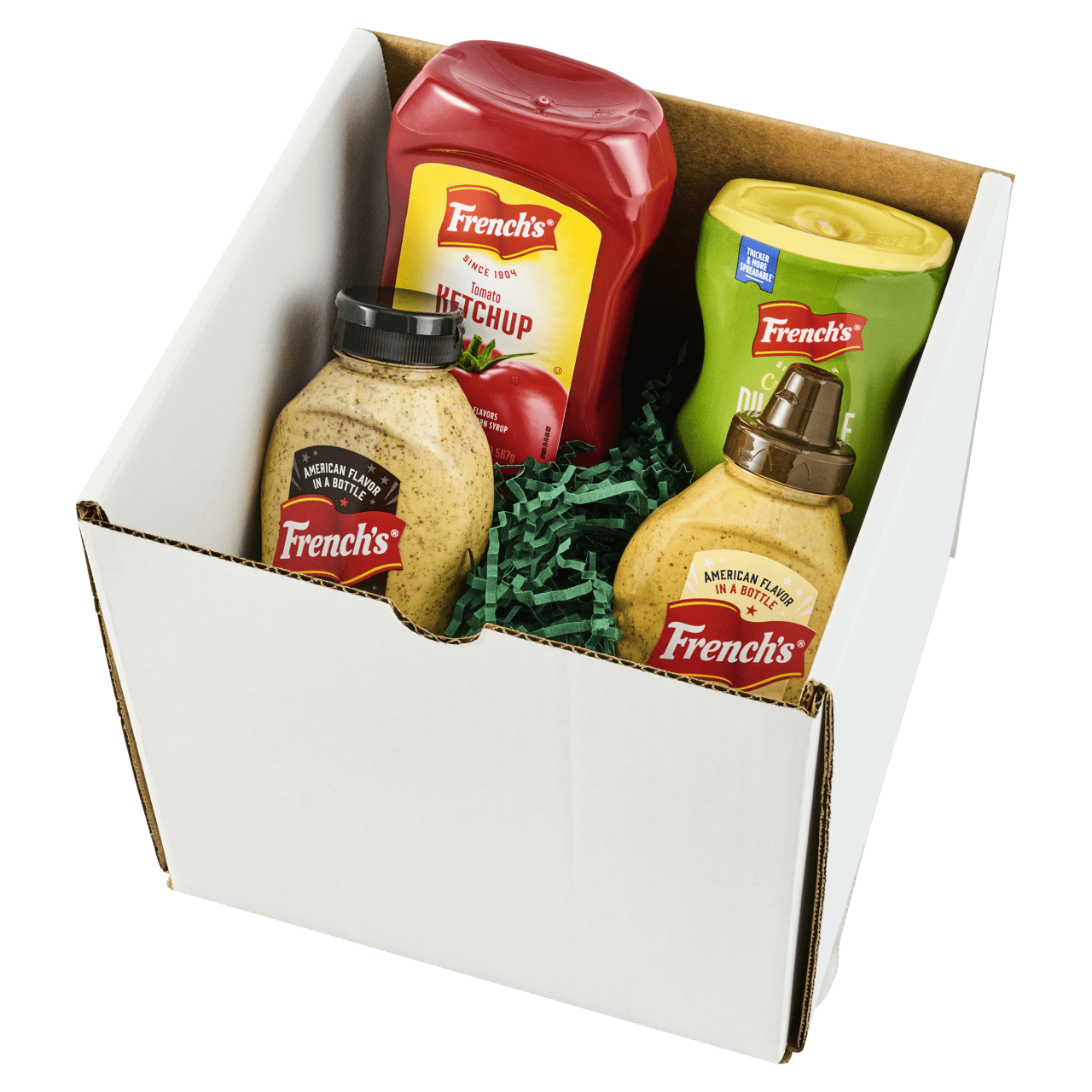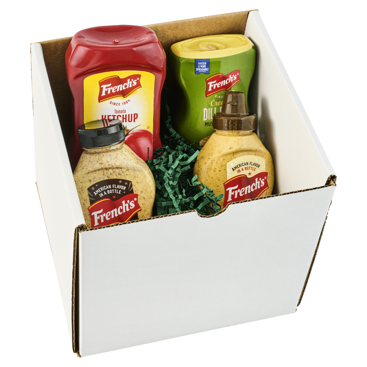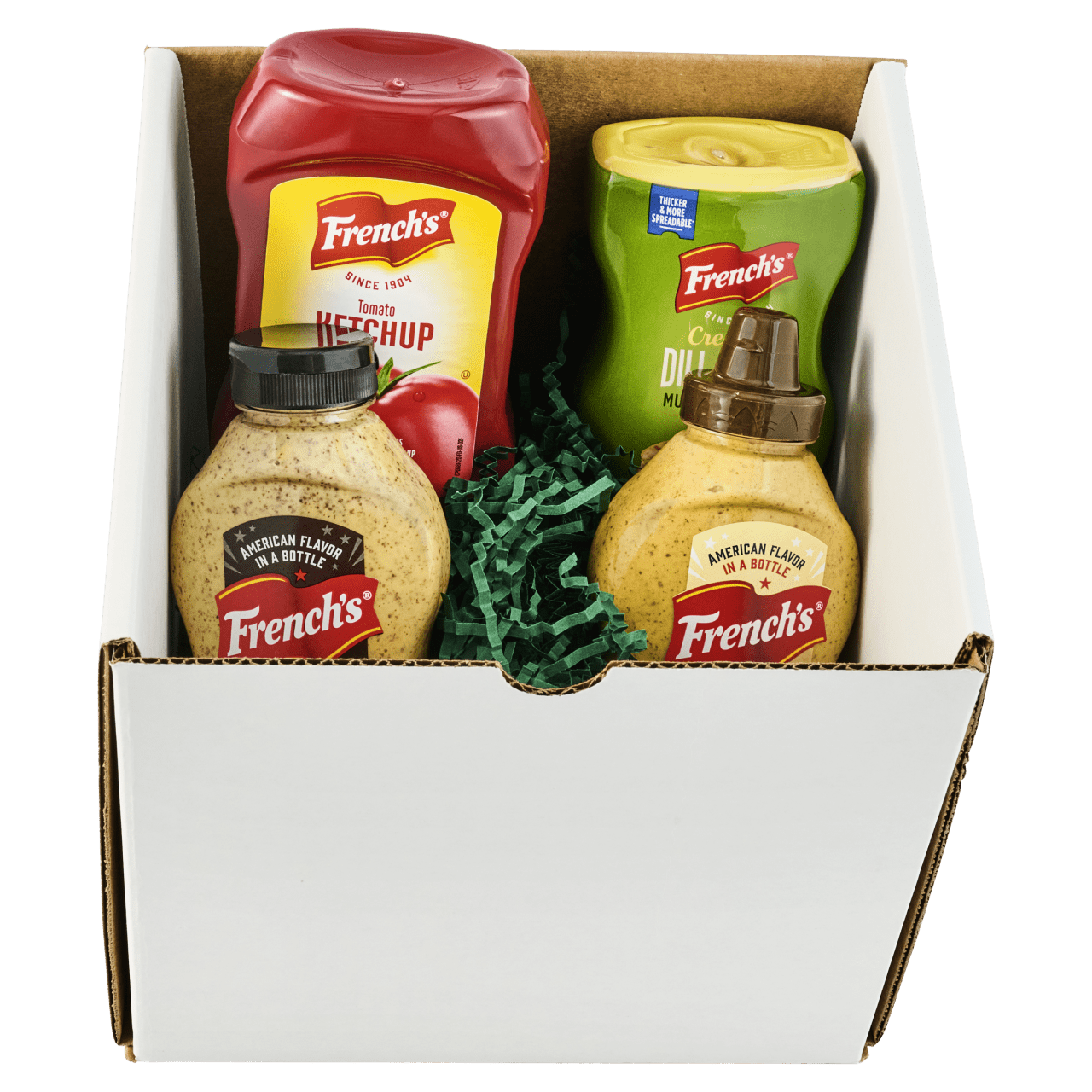 - 4-PACK: Exciting gift pack includes three popular French’s mustards – Stone Ground Dijon, Spicy Brown, and Creamy Dill Pickle Mustard Spread – and one Tomato Ketchup.