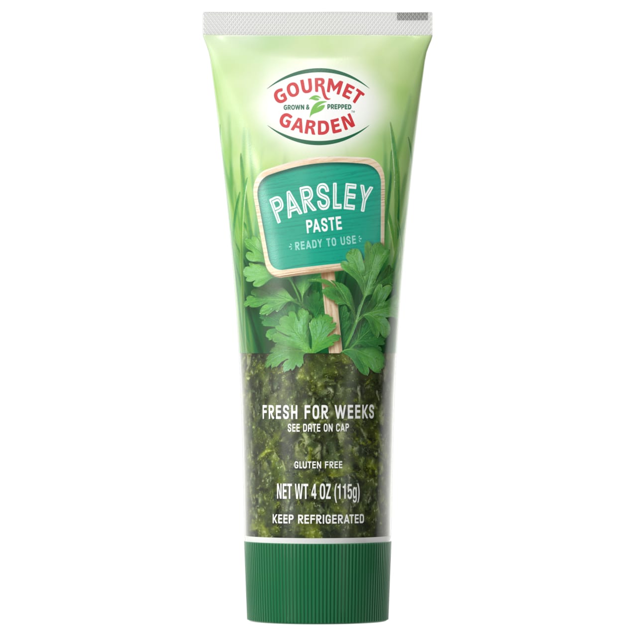 Parsley- especially when it's Gourmet Garden Parsley Stir-In Paste- can be used for so much more than traditional garnish. Our paste is an easy way to add vibrant, aromatic flavor to poultry, seafood, eggs, potatoes and grains. No chopping needed, and no wilted herbs to discard! Parsley paste is at its best flavor, color and aroma when it reaches your family's table. Freshly picked bunches of parsley are washed, chopped and packaged in a convenient squeeze tube. All you need to do is stir into your favorite recipes for soups, pasta, marinades and more. Use 1 tablespoon of paste for 1 tablespoon of fresh parsley. Store refrigerated for weeks after opening.
