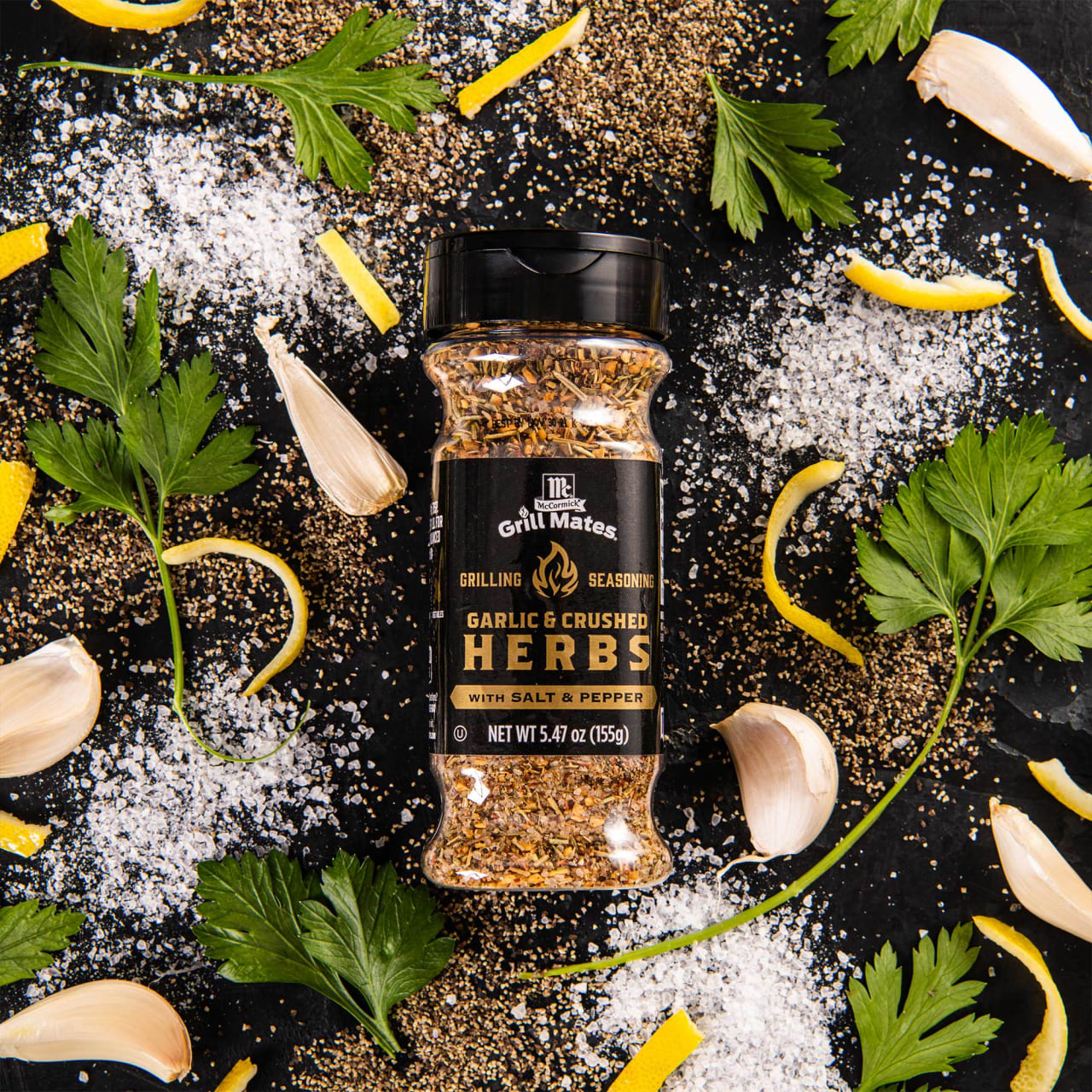 Grilling something epic is all about the heat, the meat and the seasoning to enhance the steak, chicken or chop you're grilling. McCormick Grill Mates Garlic & Crushed Herbs Grilling Seasoning ....