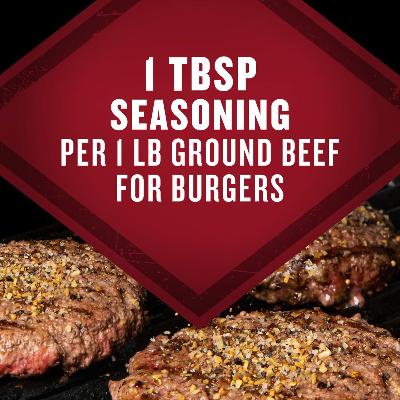 Master the flame, master the flavor. Make dinner extra special with just a shake of McCormick Grill Mates Hamburger Seasoning. Made with black pepper, chili pepper, onion, red bell pepper, and garlic, our seasoning helps you create bold, juicy burgers. All it takes is 1 tablespoon per 1 pound of ground beef or turkey to turn a bland burger into a mouthwatering main course. Our seasoning contains no MSG or artificial flavors, so you can grill with confidence. Perfect your grilling and enjoy delicious burgers every single time.