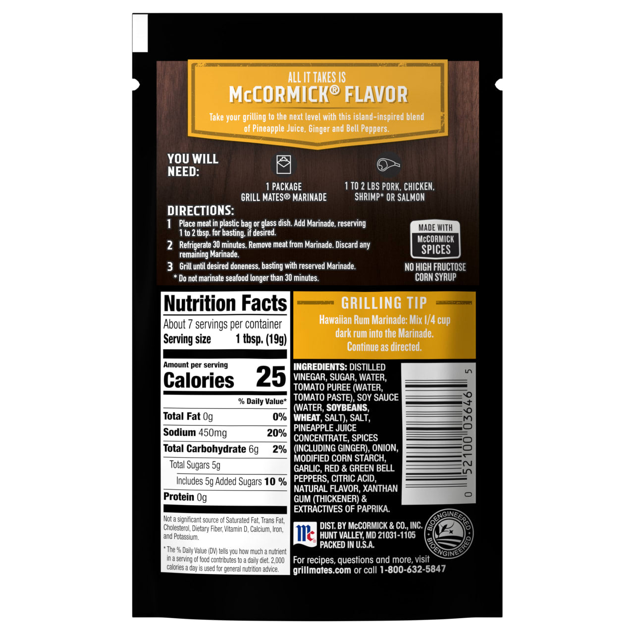 Bring big island flavor to the table with McCormick Grill Mates Hawaiian Woodfire Grill Marinade, a marinade pouch for 2 lbs. pork, chicken, shrimp or salmon. It livens up your barbecue with luau-i....