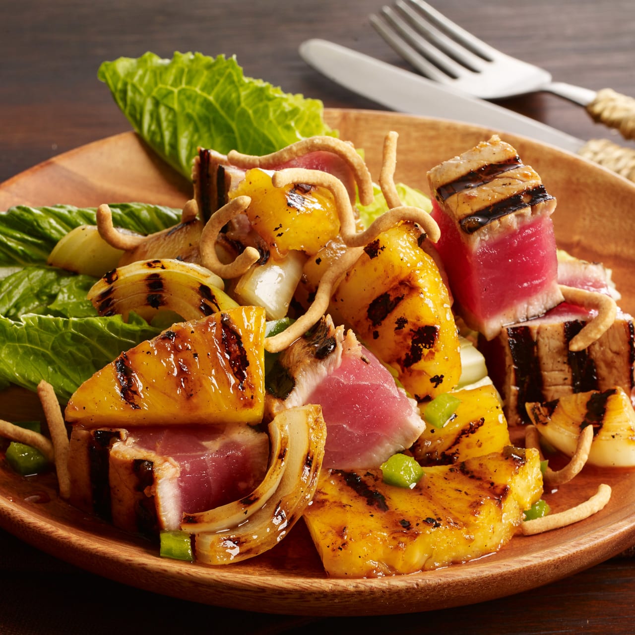 Bring big island flavor to the table with McCormick Grill Mates Hawaiian Woodfire Grill Marinade, a marinade pouch for 2 lbs. pork, chicken, shrimp or salmon. It livens up your barbecue with luau-inspired Hawaiian grill seasoning. Our single-use wet marinade is loaded with a sweet & saucy blend of soy sauce, pineapple juice, ginger and bell peppers. In just three easy steps add Hawaiian flavor to meat or seafood. Just tear, pour and marinate. Then, grill! We love it as a 30-minute chicken marinade or pork marinade for weeknight dinners. For a memorable cookout, add a little rum to the marinade and pour over chicken or pork cubes, then thread onto skewers with pineapple and bell pepper chunks for island kabobs with smokin' woodfire seasoning.