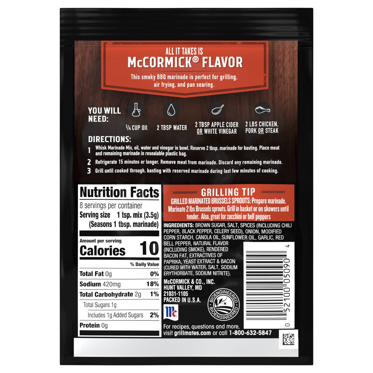 For robust, smoky taste at the grill, reach for McCormick® Grill Mates® Smoky Bacon BBQ 3-In-1 Marinade Mix. Use it your way on all that you're grilling- it's an all-in-one marinade, burger mix-in ....