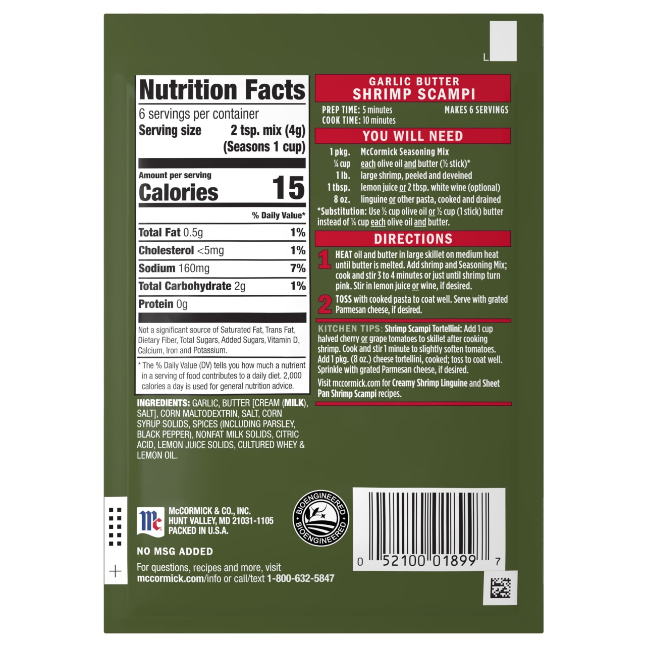 McCormick Garlic Butter Shrimp Scampi Mix is perfect for turning pasta into an experience you and your family will savor to the last bite. Warm garlicky-buttery sauce with shrimp and linguine. Just....
