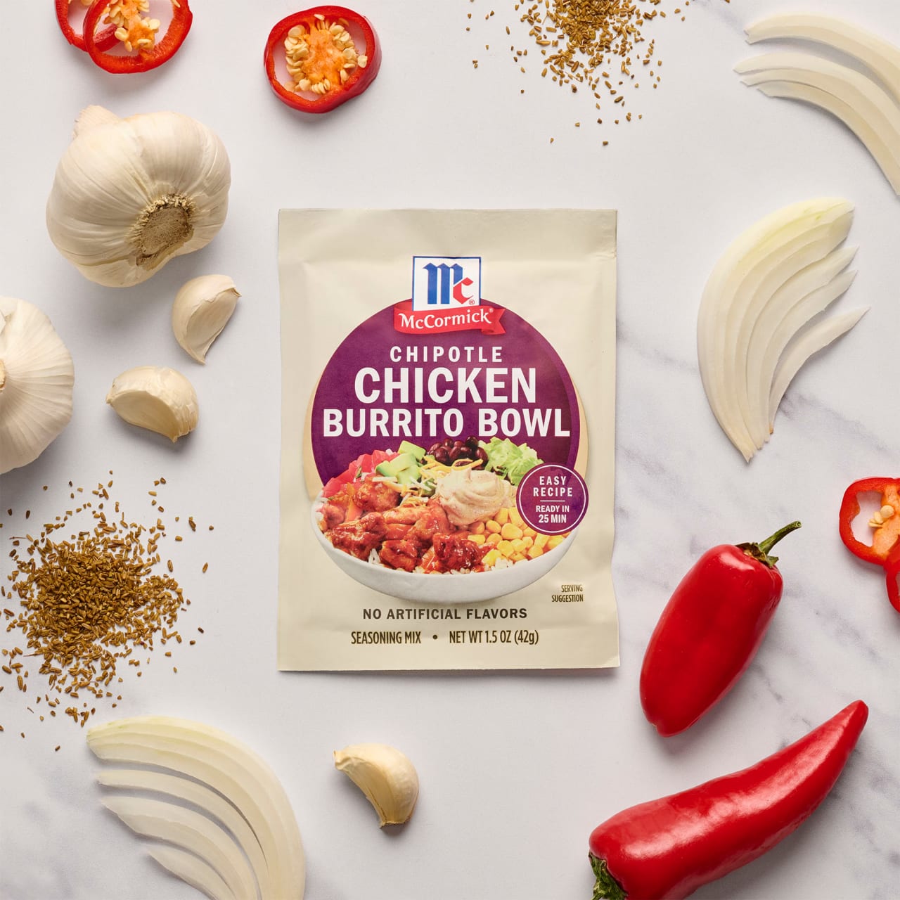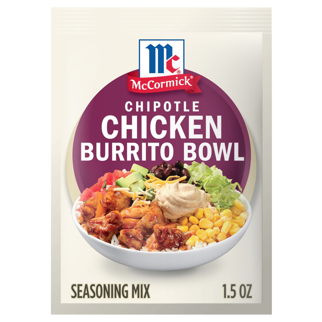 - SOUTHWEST-STYLE FLAVOR: McCormick Chipotle Chicken Burrito Bowl Seasoning Mix is a zesty blend of Southwest-style flavors for a hearty dinner the whole family will love.