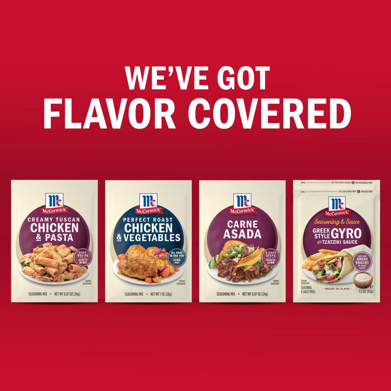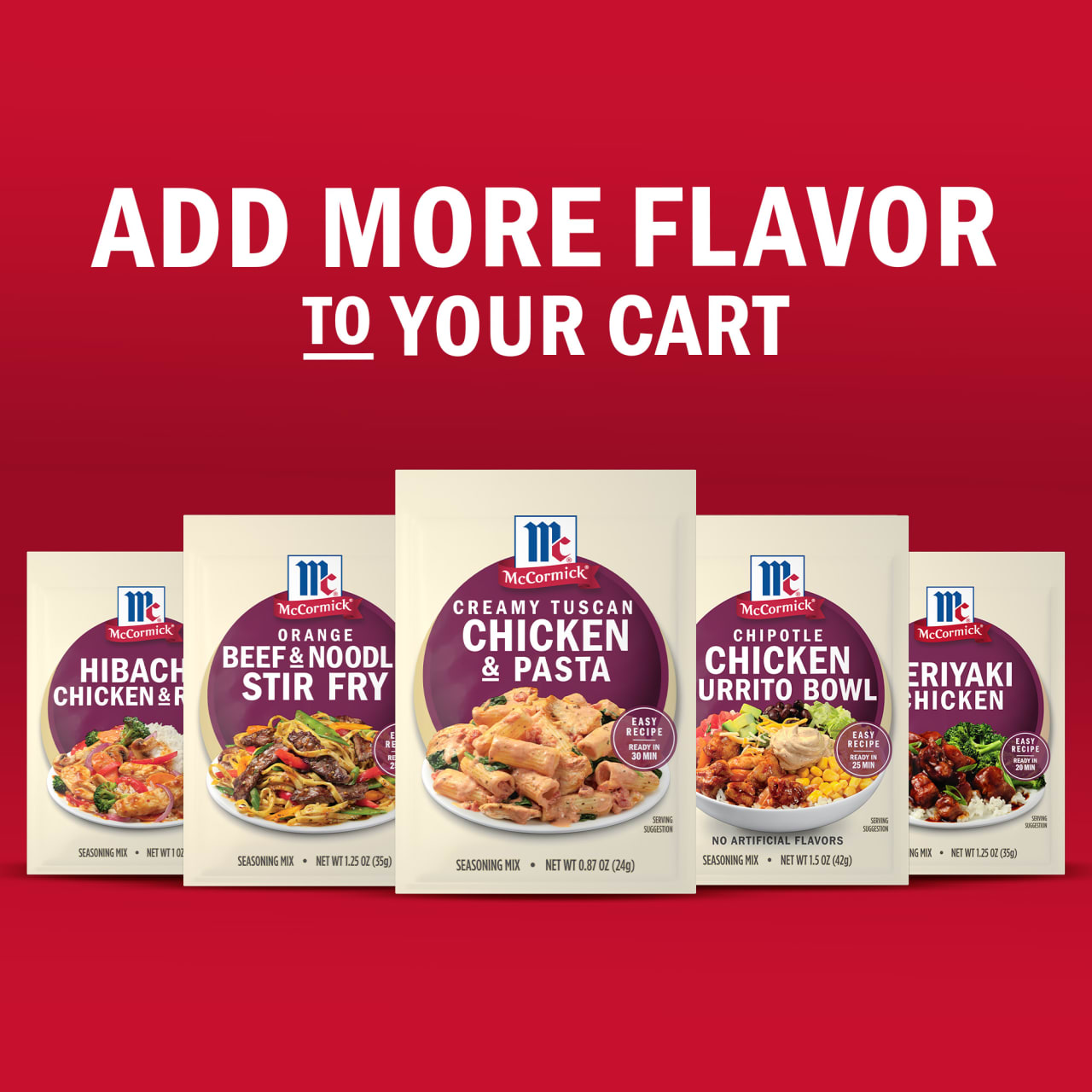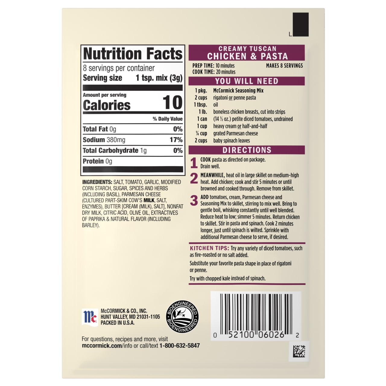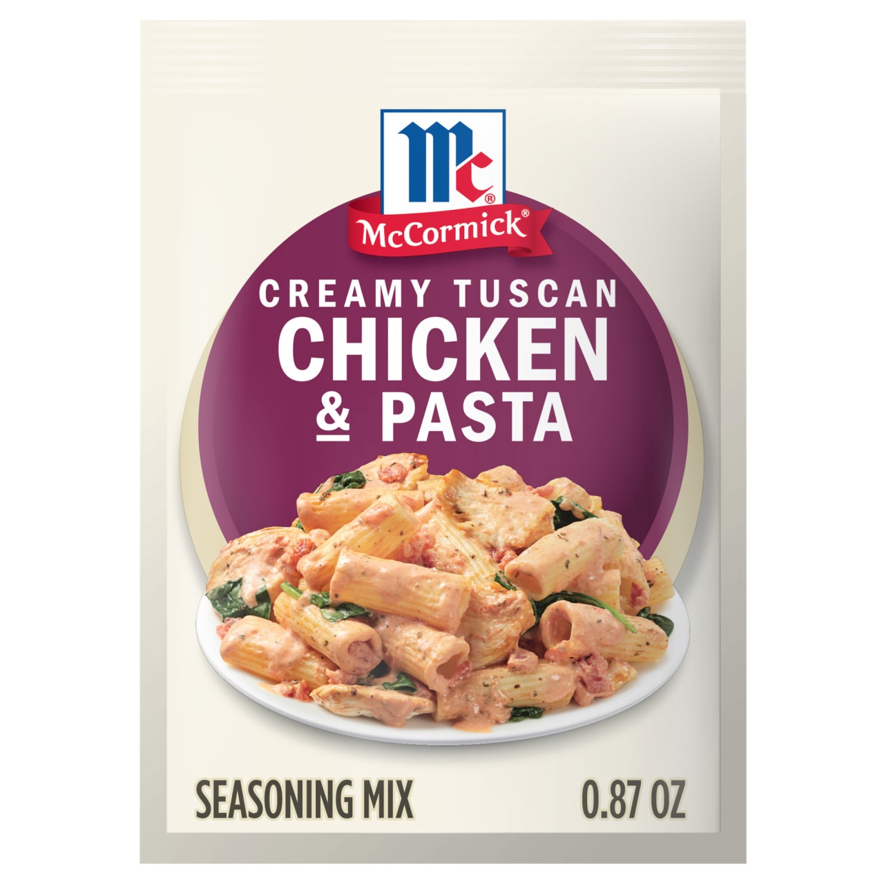 What's for dinner? McCormick® Creamy Tuscan Chicken & Pasta Seasoning Mix helps you put together a complete meal that contains a protein, vegetable, and starch. In just 30 minutes, you can have....