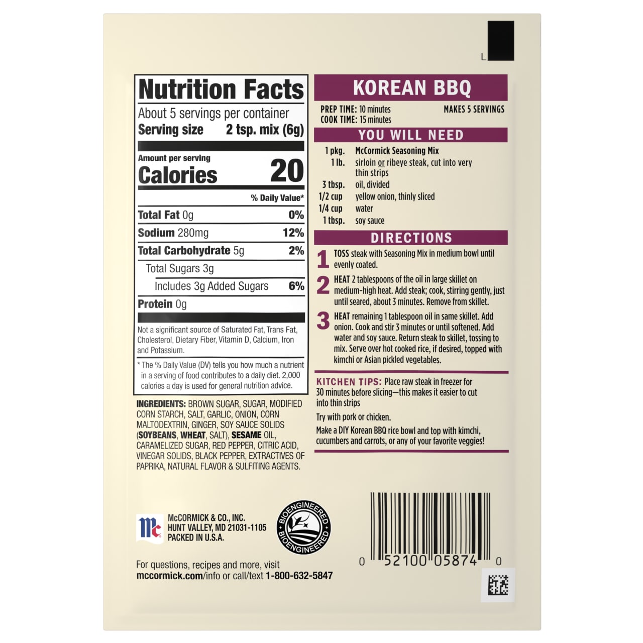 McCormick® Korean BBQ Seasoning Mix, 1.12 oz (6-Pack)