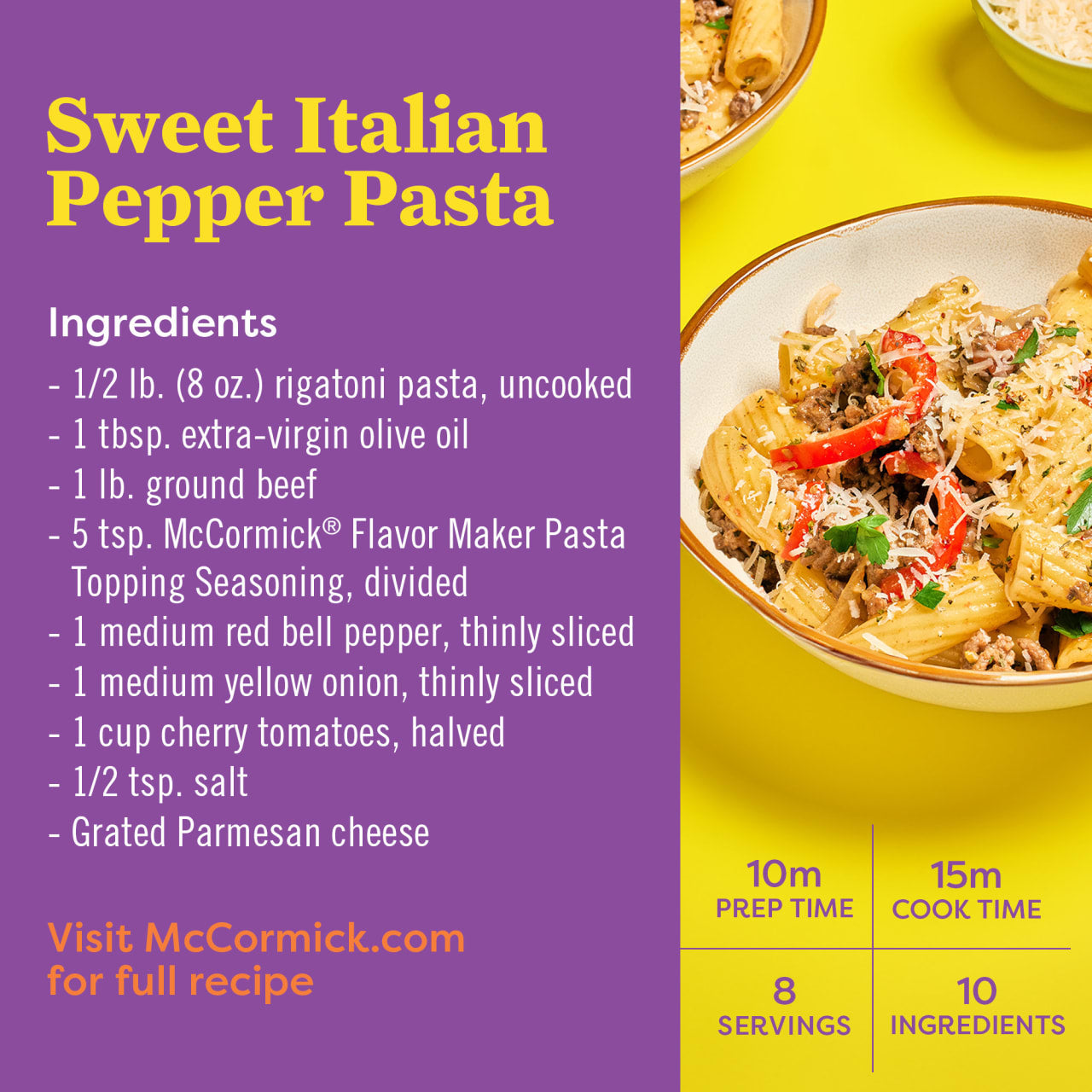 Trust us when we say you'll be pasta-tively obsessed with McCormick® Flavor Maker Pasta Topping Seasoning. Made with garlic, basil, and cheese, it delivers a boost of herby, savory flavor to pasta,....