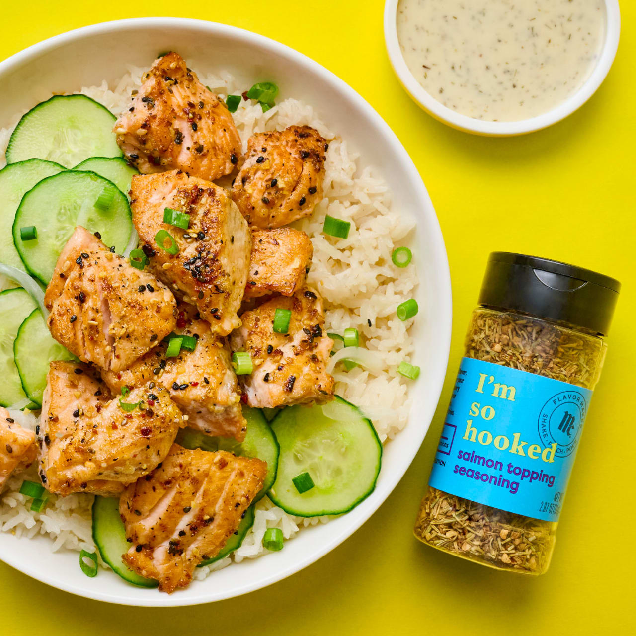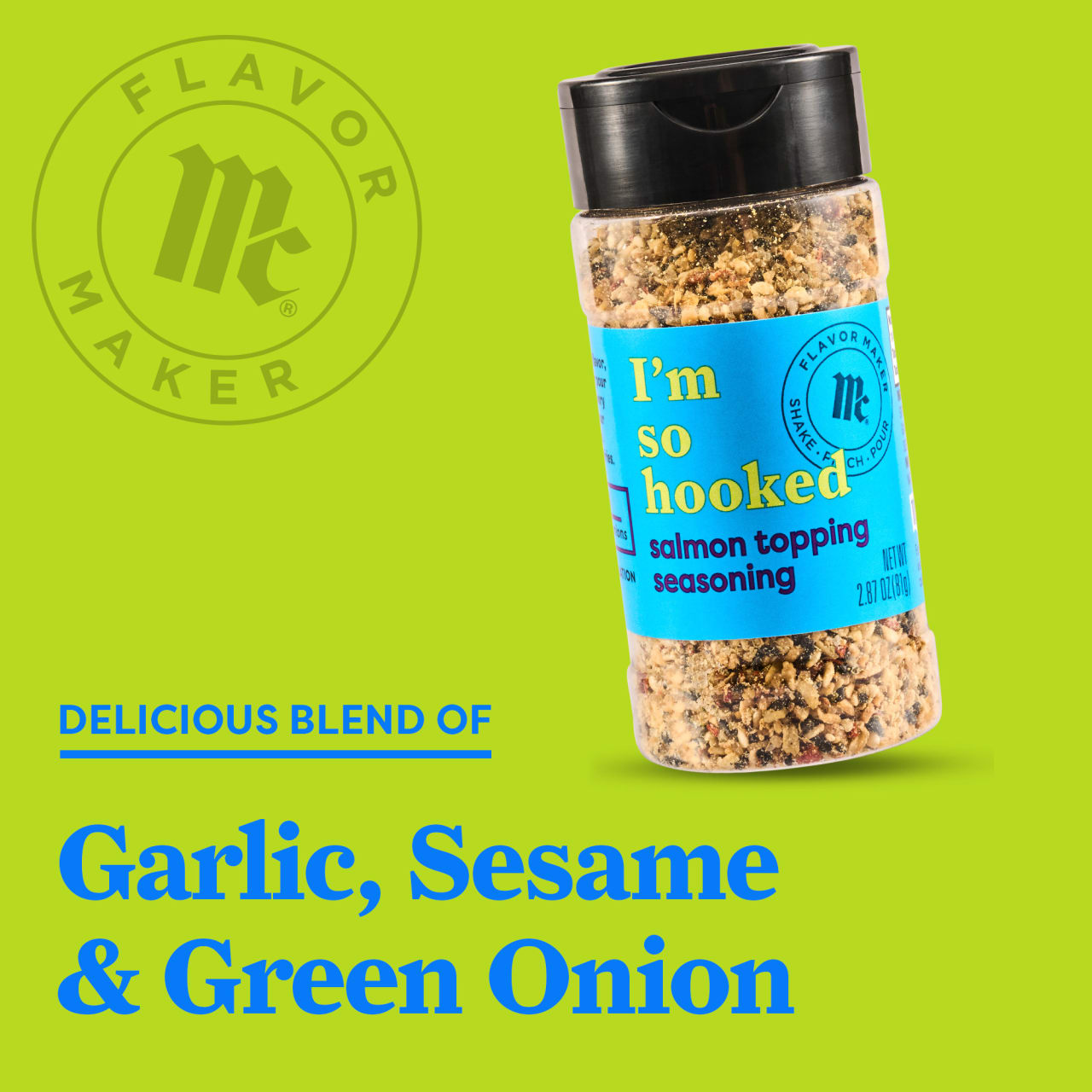 "Hooked” is the only way to be when it comes to McCormick® Flavor Maker Salmon Topping Seasoning. Made with simple ingredients, like garlic, sesame, and green onion, it delivers an instantly sweet ....