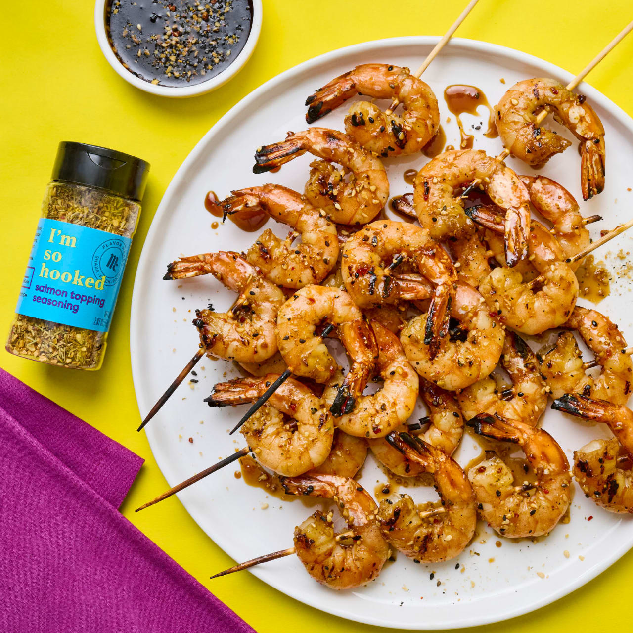 "Hooked” is the only way to be when it comes to McCormick® Flavor Maker Salmon Topping Seasoning. Made with simple ingredients, like garlic, sesame, and green onion, it delivers an instantly sweet and savory flavor to salmon, shrimp, or stir-fries while cooking or tableside. Treat your favorite seafood to Salmon Topping Seasoning. Simply flip the cap to pinch, pour, or shake, and enjoy. Featured in our easy recipe for citrusy Glazed Salmon, it's also a convenient way to season shrimp or other seafood, and stir-fries.