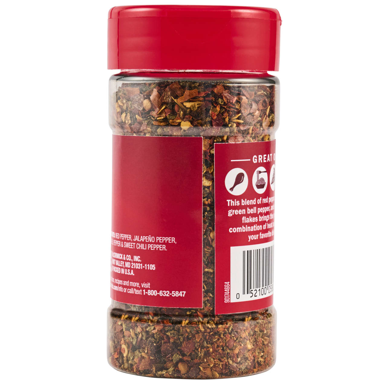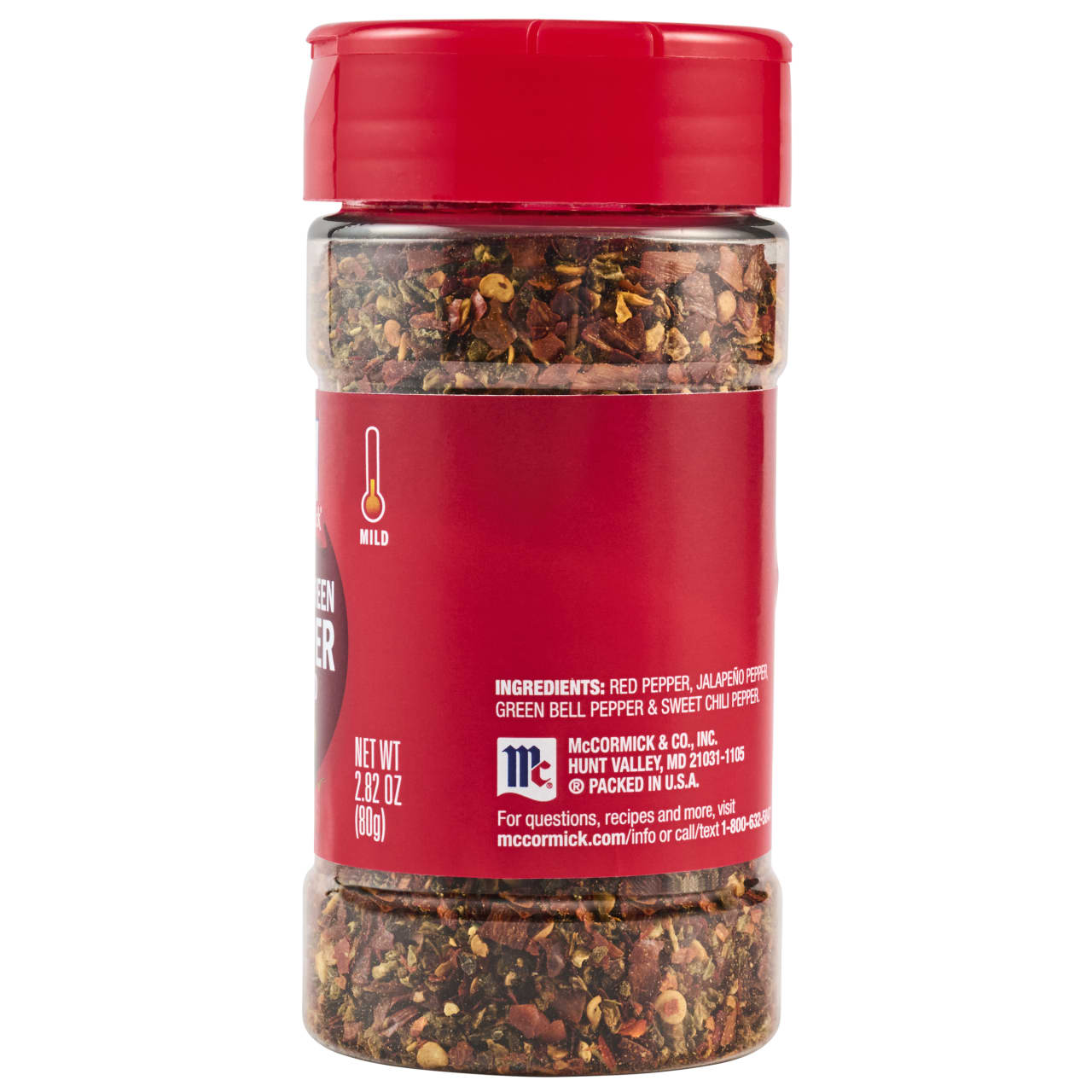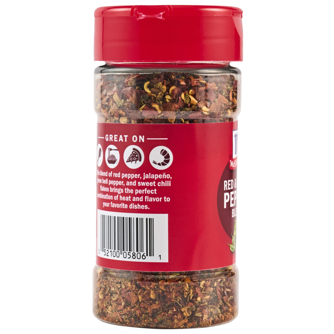 Reach for McCormick Crushed Red and Green Pepper Blend to treat your dishes to the standout flavor of this four pepper blend - red peppers, jalapeño peppers, green bell peppers, and sweet chili flakes. Every bite offers up a balance of mild heat with robust pepper taste. There's always an opportunity for more flavor when it comes to spice blends! Whether you're entertaining for the holidays or it's a random weeknight meal, there's a place in every pantry for this craveable combination of peppers. Shake it over baked or roasted potatoes, or pizza. Mix into olive oil and drizzle with balsamic vinegar for a tasty appetizer served with bread for dipping. Enjoy over roasted or grilled vegetables, chicken, and pasta … you really can't go wrong.
