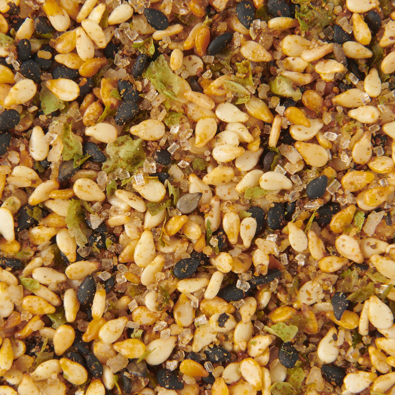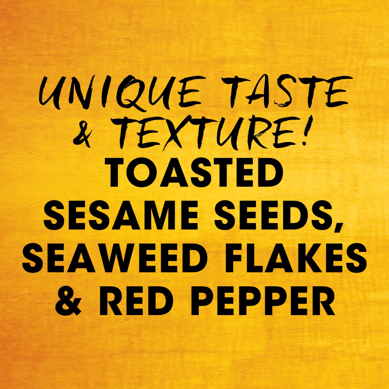 - SPICY BLEND: Made with ingredients to deliver mouthwatering flavor and texture with a hit of heat – including sesame seeds, salt, sugar, red pepper, seaweed flakes, and parsley.