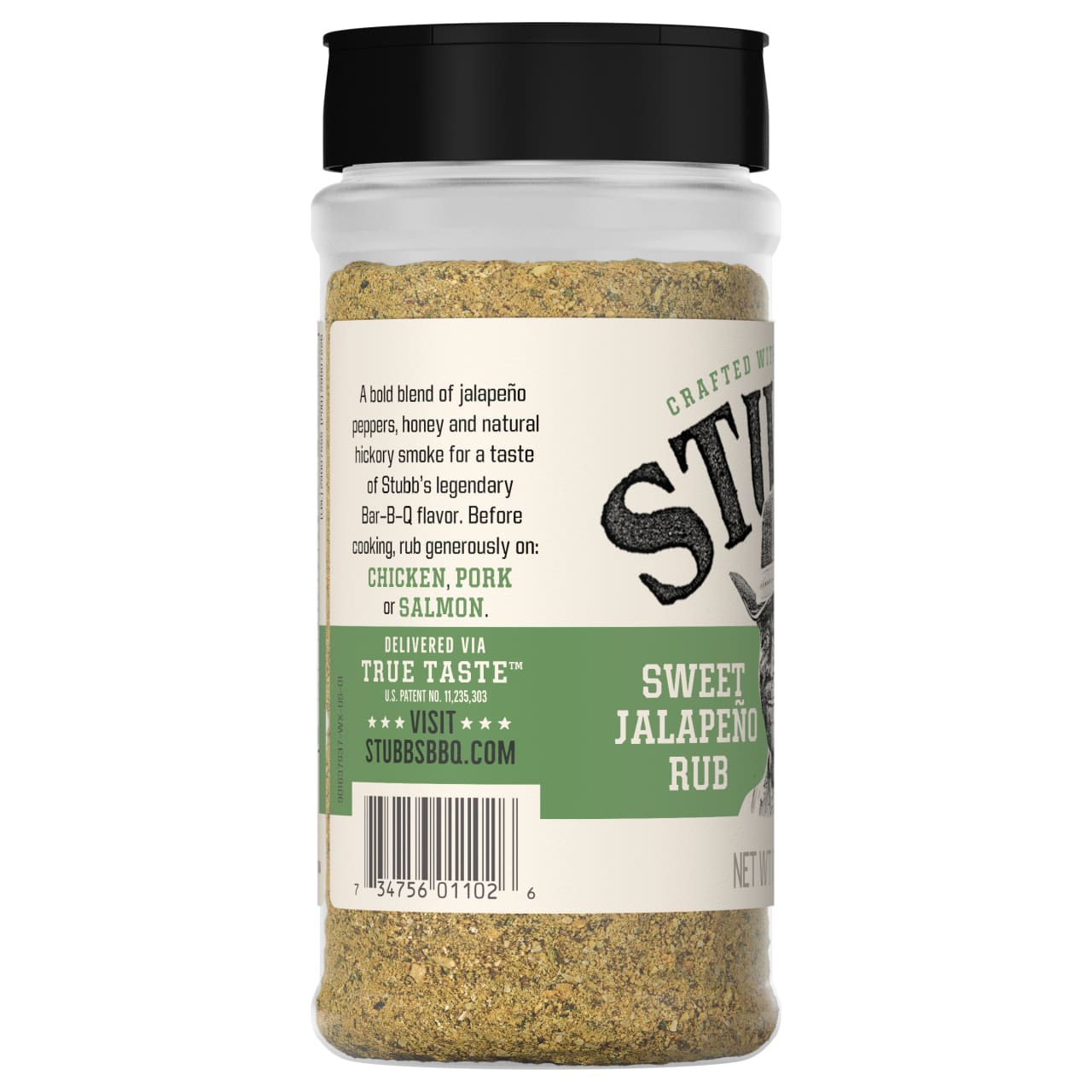 A blend of spicy jalapeño peppers, sweet honey and natural hickory smoke for adding bold heat and tangy flavor to chicken, pork or salmon. This dry rub delivers a taste of Stubb's® legendary Texas BBQ flavor to your backyard cookout.