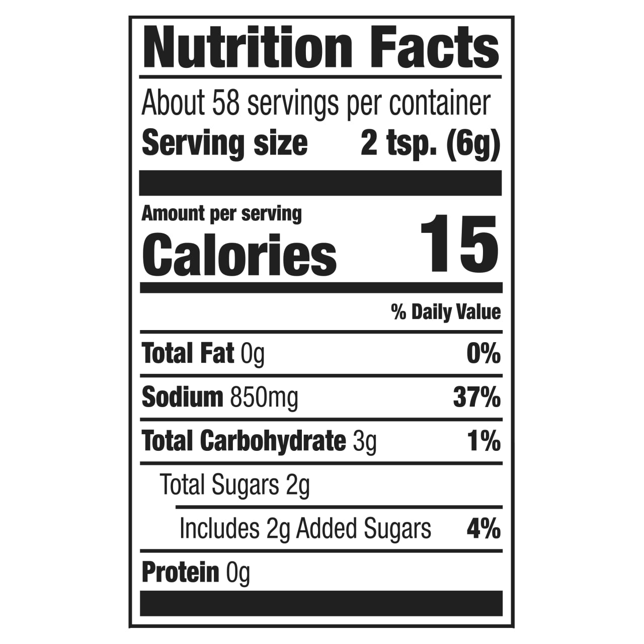 INGREDIENTS: SEA SALT, CANE SU6AR, MOLASSES (REFINERY SYRUP, CANE MOLASSES, CARAMEL COLOR), SPICES (INCLUDING BLACK PEPPER, PAPRIKA), GARLIC, RED PEPPER, NATURAL FLAVOR (INCLUDING MESQUITE SMOKE), CITRIC ACID, EXTRACTIVES OF PAPRIKA 8. EXTRACTIVES OF CUMIN.