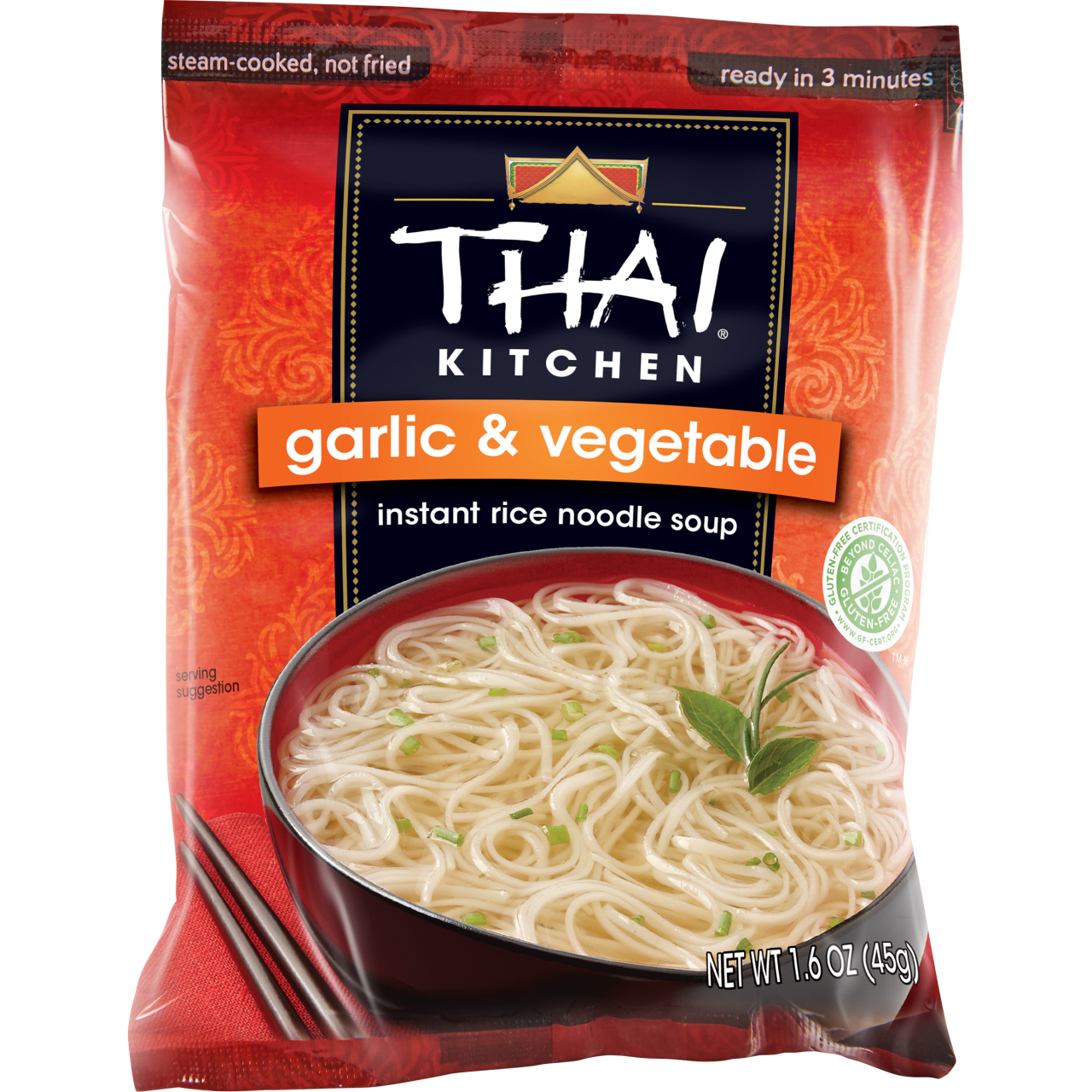 Enjoy the unique flavors of Thai-style cuisine with our Thai Kitchen Gluten Free Garlic and Vegetable Instant Rice Noodle Soup. Our delicate rice noodles are prepared in a savory broth flavored ....