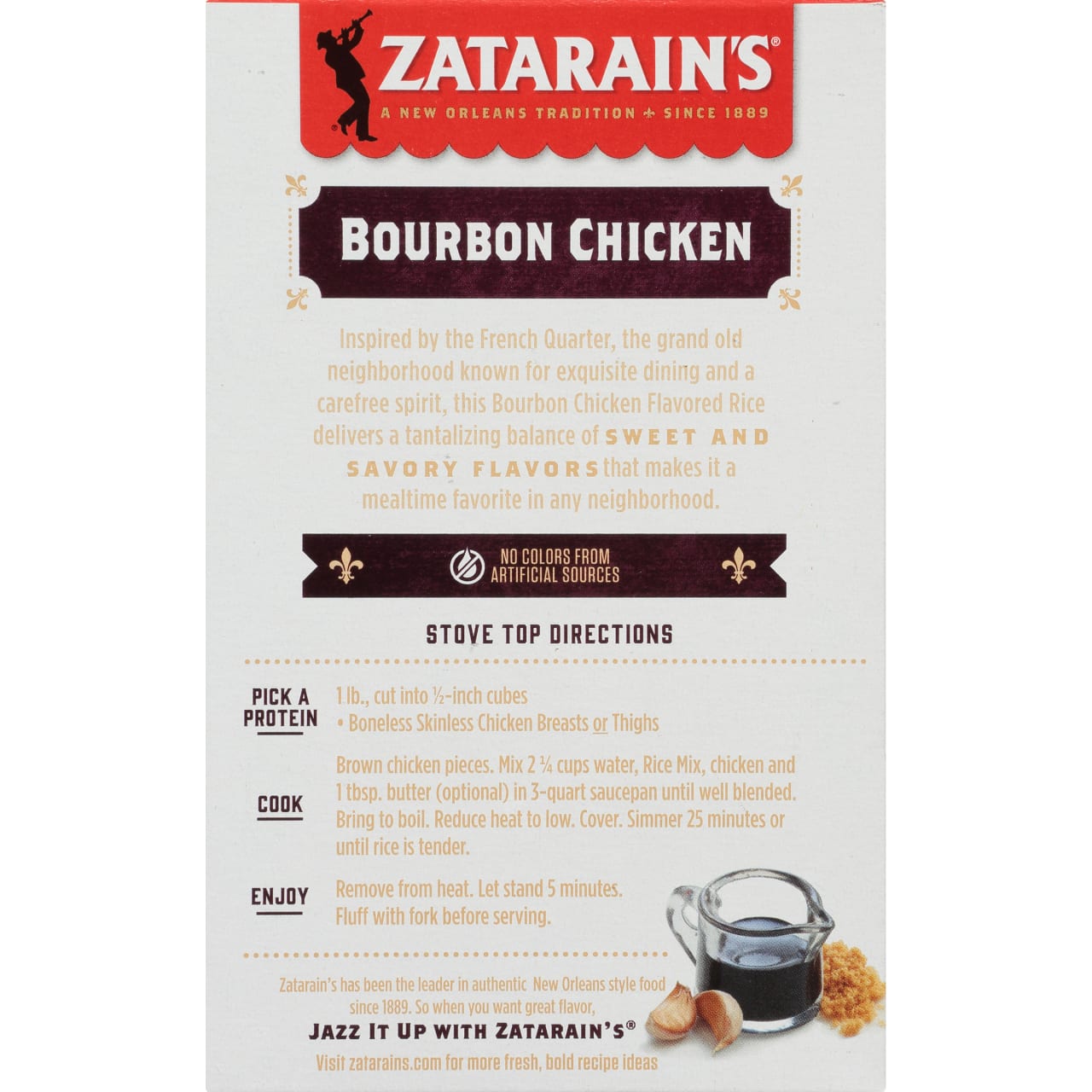 Inspired by the French Quarter, the grand old neighborhood known for exquisite dining and a carefree spirit, this Bourbon Chicken Flavored Rice delivers a tantalizing balance of sweet and savory flavors that makes it a mealtime favorite in any neighborhood. Zatarain's Bourbon Chicken Flavored Rice is a bold compliment to any meal. Use it as a side to liven up a simple grilled chicken breast, or stir in a mixture of fresh vegetables. However you prepare it, you've found a flavorful, satisfying new addition to your weekly dinner lineup.