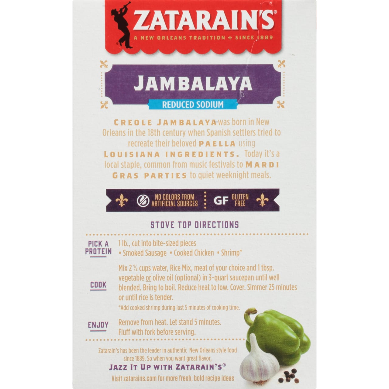 Zatarain's Jambalya Mix brings authentic New Orleans-style flavor -- with 25% less sodium -- right to your kitchen. This Creole dish of Spanish and French origin is made with rice and a variety of ....