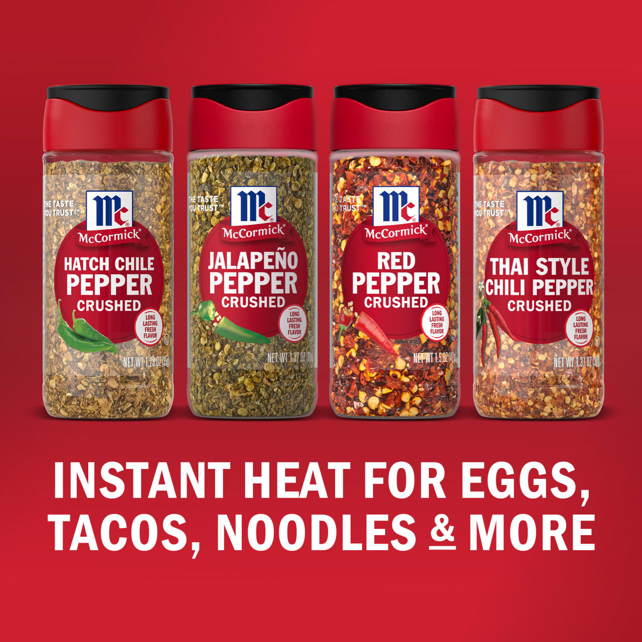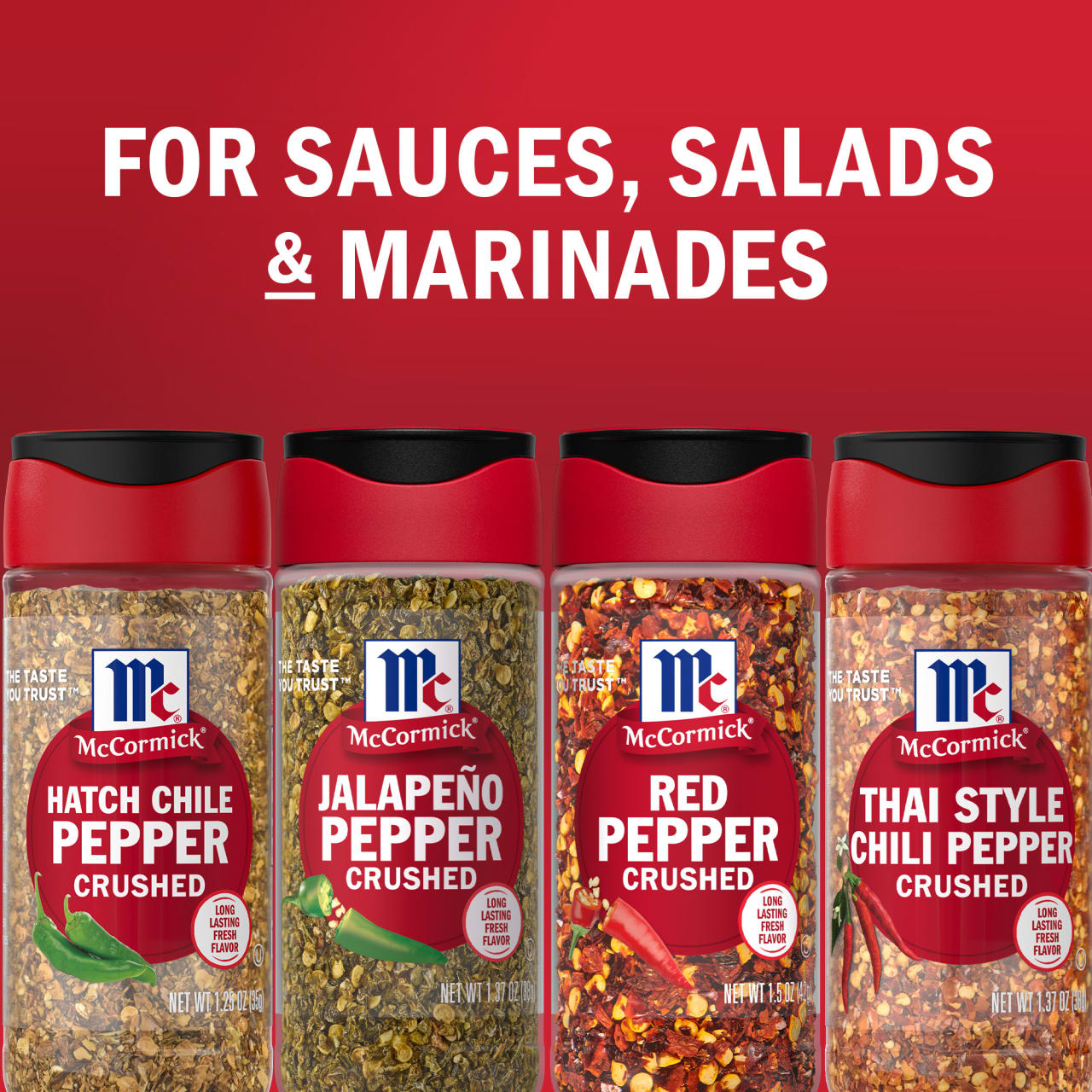 From classic Crushed Jalapeño Pepper to earthy Thai Style Chili Pepper, add a unique kick of heat, texture, and vibrant color to all your favorite meals with your favorite McCormick Crushed Peppers.
