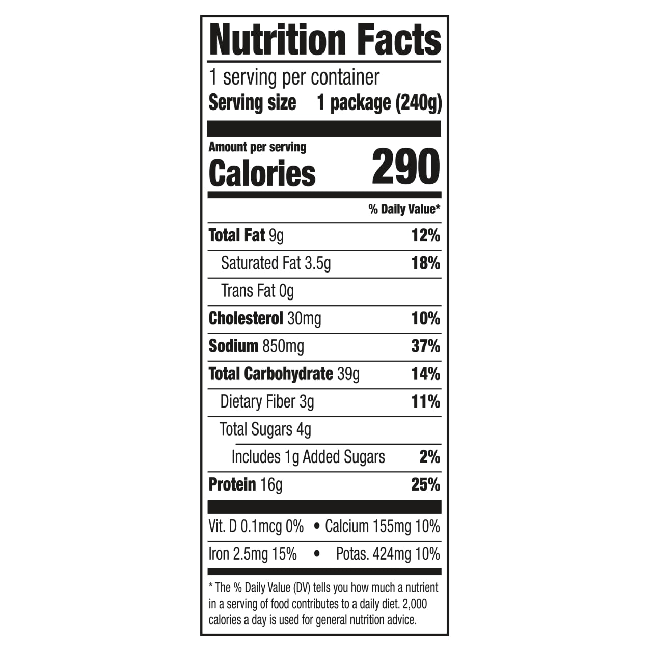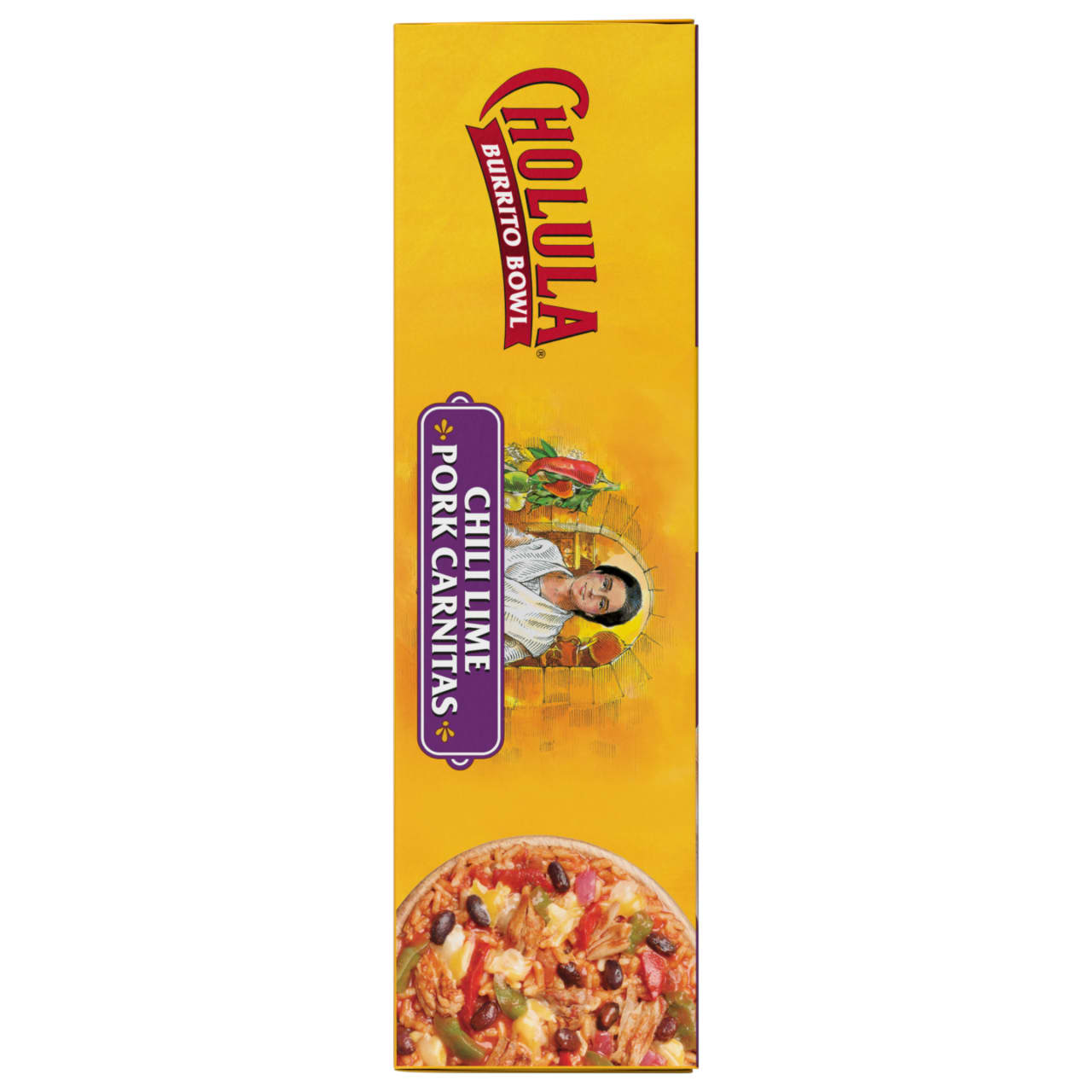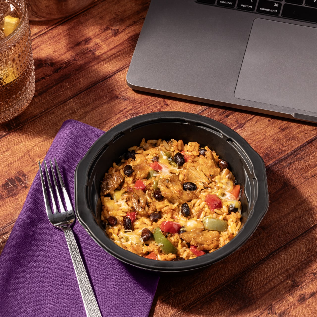 INGREDIENTS: COOKED WHITE RICE (WATER, WHITE RICE), TOMATOES (TOMATOES, TOMATO JUICE, CITRIC ACID), COOKED SEASONED PULLED PORK (PORK, WATER, SALT), RED AND GREEN BELL PEPPER, BLACK BEANS (BLACK BEANS, WATER), FIRE-ROASTED RED ONION, CHEDDAR CHEESE PASTEURIZED CULTURED MILK, SALT, ENZYMES, ANNATTO VEGETABLE COLOR), MONTEREY JACK CHEESE (PASTEURIZED MILK, CHEESE CULTURES, SALT, ENZYMES), CHOLULA HOT SAUCE (WATER, PEPPERS (ARBOL AND PIQUIN), SALT, VINEGAR, GARLIC POWDER, SPICES, XANTHAN GUM), WATER, GUAJLLO CHILI PEPPER BASE (WATER, GUAJILLO CHILI, ONION PUREE, SEA SALT, CANE SUGAR, SPICES [INCLUDING MUSTARD), CILANTRO, GARLIC PUREE, SESAME SEEDS, PAPRIKA, CORN STARCH, CITRIC ACID, CHICKEN STOCK CONCENTRATE (CHICKEN STOCK, NATURAL FLAVORS [CONTAINS CHICKEN MEAT], SALT, CHICKEN FAT, MODIFIED CORN STARCH, GARLIC POWDER, SPICES, VEGETABLE STOCK [CARROT, CELERY, ONION, LEEK, RED BELL PEPPER, TOMATO, PARSLEY, GARLIC), CANOLA OIL, ONION, CRYSTALLIZED LIME CITRIC ACID, NATURAL LIME FLAVOR [MALTODEXTRIN, SUGAR, LIME OIL, LIME JUICE CONCENTRATE), CILANTRO, GARLIC (GARLIC, WATER), SALT, FLAVOR (CONTAINS MALTODEXTRIN), SPICES (CUMIN, BLACK PEPPER, OREGANO, PAPRIKA), CORN STARCH, SUGAR, ANNATTO COLOR (FOOD STARCH-MODIFIED, ANNATTO EXTRACT).
