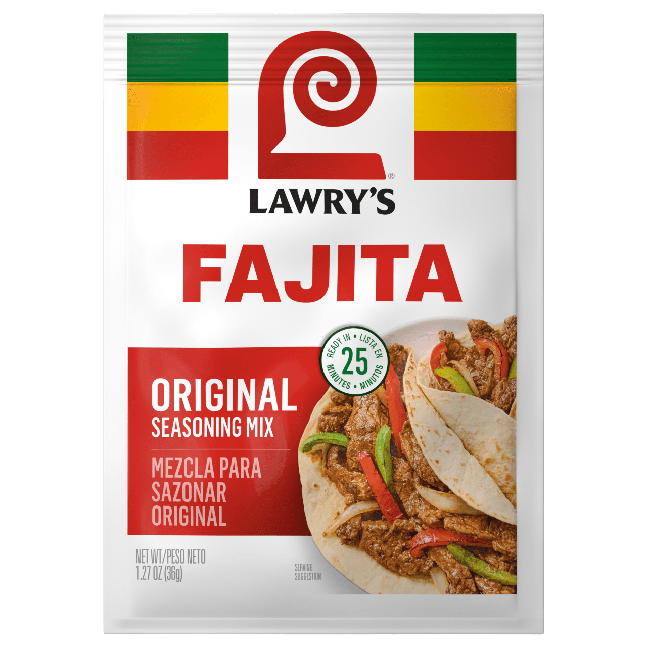 Take your taste buds on a trip to the Southwest with Lawry's Fajitas Seasoning Mix. Featuring a spicy blend of natural flavors, including black pepper, chili pepper, oregano, cumin, garlic and a hint of lime, this seasoning mix is all you need to prepare sizzling restaurant-style fajitas in no time. Simply combine seasoning mix with steak, chicken or ground turkey and sauteed veggies, spoon into tortillas and add your choice of toppings. Or try seasoning mix in a fajita layered dip.