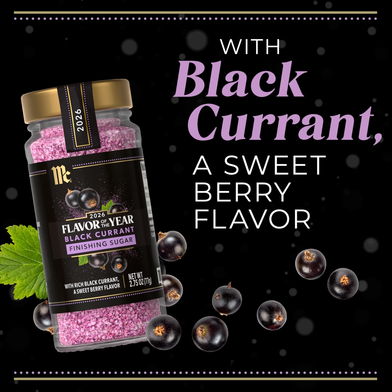 - RICH & SWEET: Inspired by the 2026 Flavor of the Year, McCormick Black Currant Finishing Sugar is the perfect touch for baked goods, beverages, desserts, and more, with its rich black currant and sweet berry flavor profile.