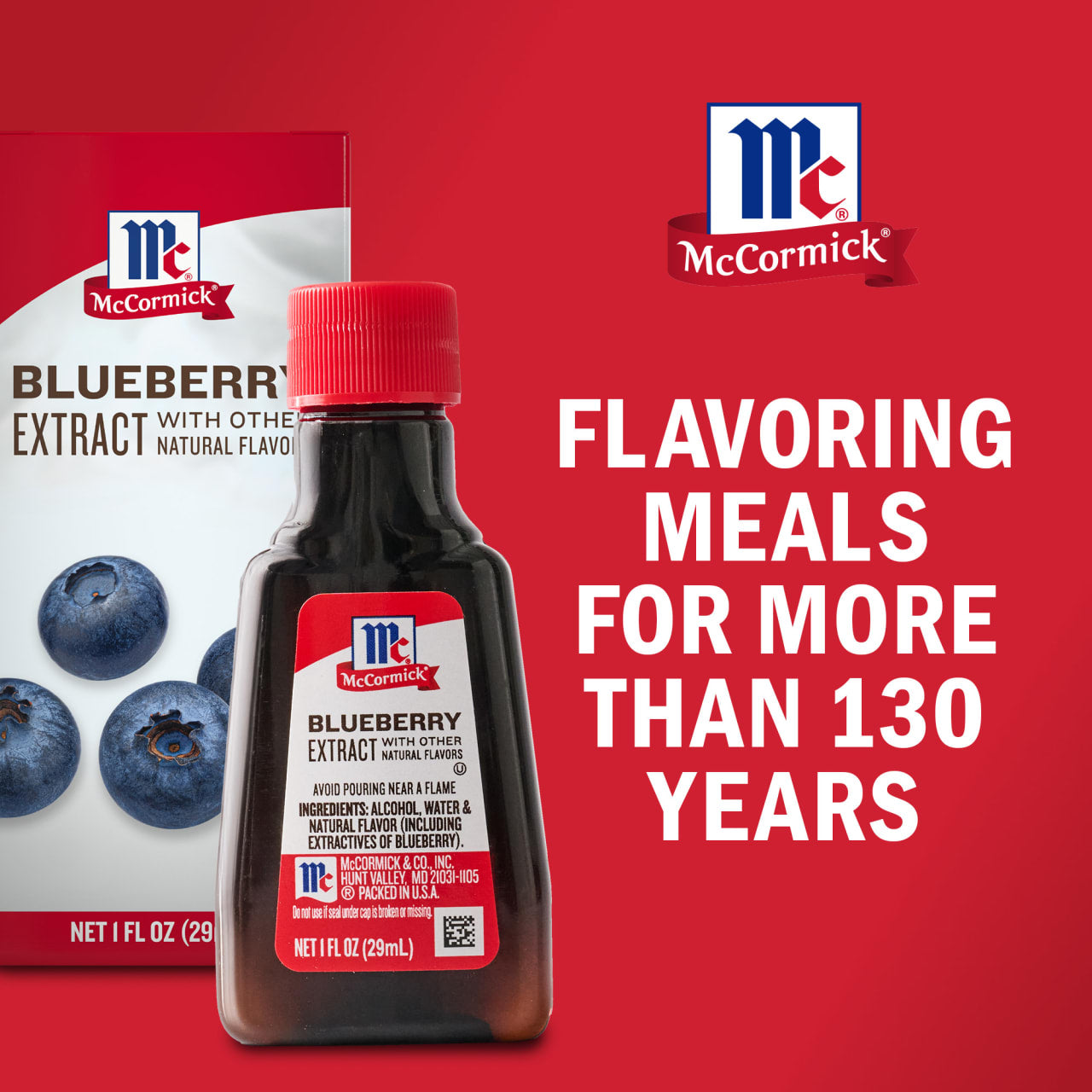 For a sweet, blueberry-flavored bite reach for McCormick Blueberry Extract with Other Natural Flavors. The bright, ripened blueberry flavor of this popular extract is a memorable addition to baking, elevating cookies, cakes, pies, pancakes, frostings, quick breads, and so much more.Delivering consistent flavor and aroma cross every bottle, you can stir blueberry extract into pancake or waffle batter, blueberry muffins, cookie dough, homemade ice cream, cheesecake, and icing. Love blueberry flavor in your drinks? Try mixing it into lemonade, mocktails, smoothies, or milkshakes for a pop of fruitiness. A stand-out flavor for holiday traditions, blueberry extract is an ingredient that can be enjoyed year-round.