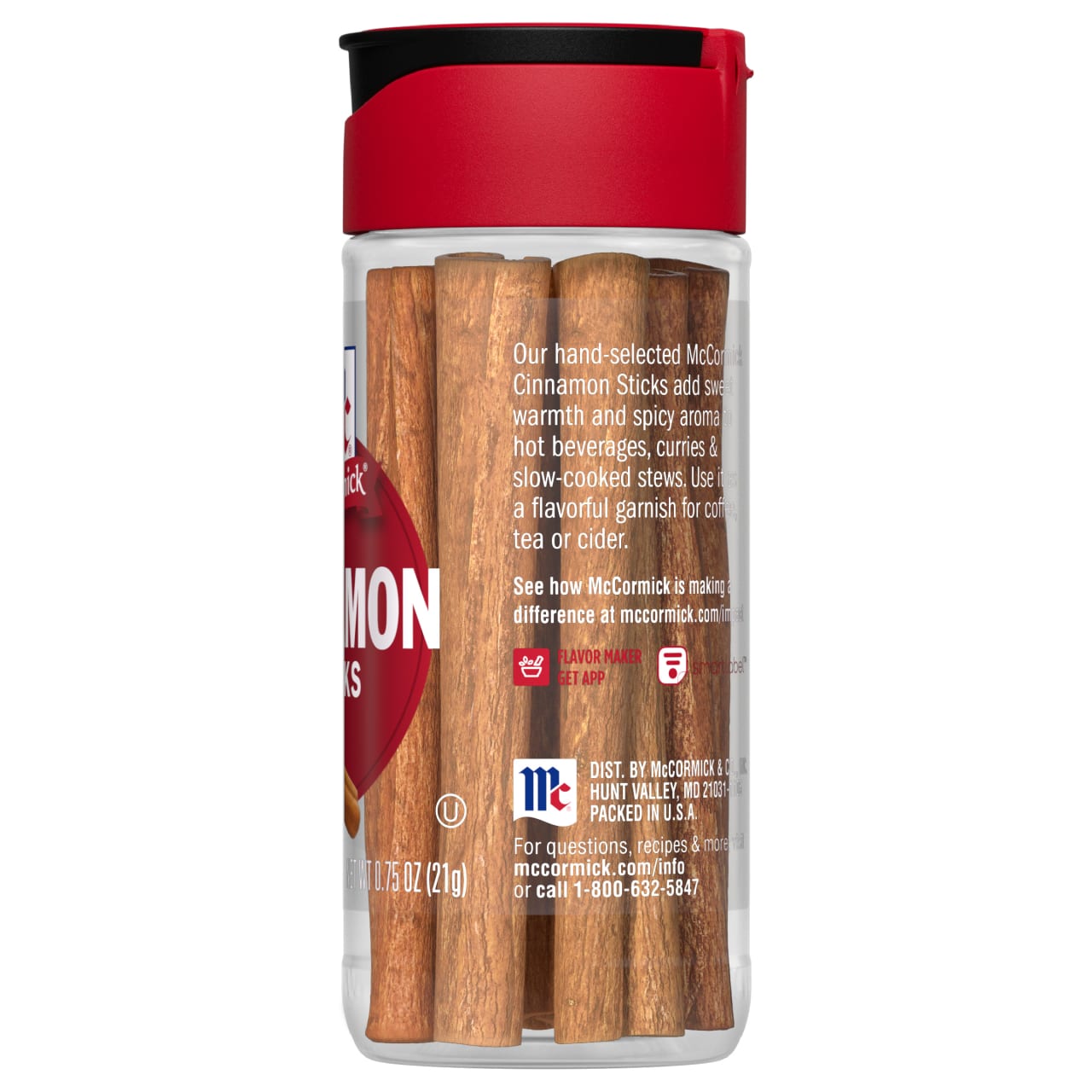 - FLAVOR PROFILE: McCormick Cinnamon Sticks add sweet warmth and spicy aroma to beverages, desserts, curries and slow-cooked stew.