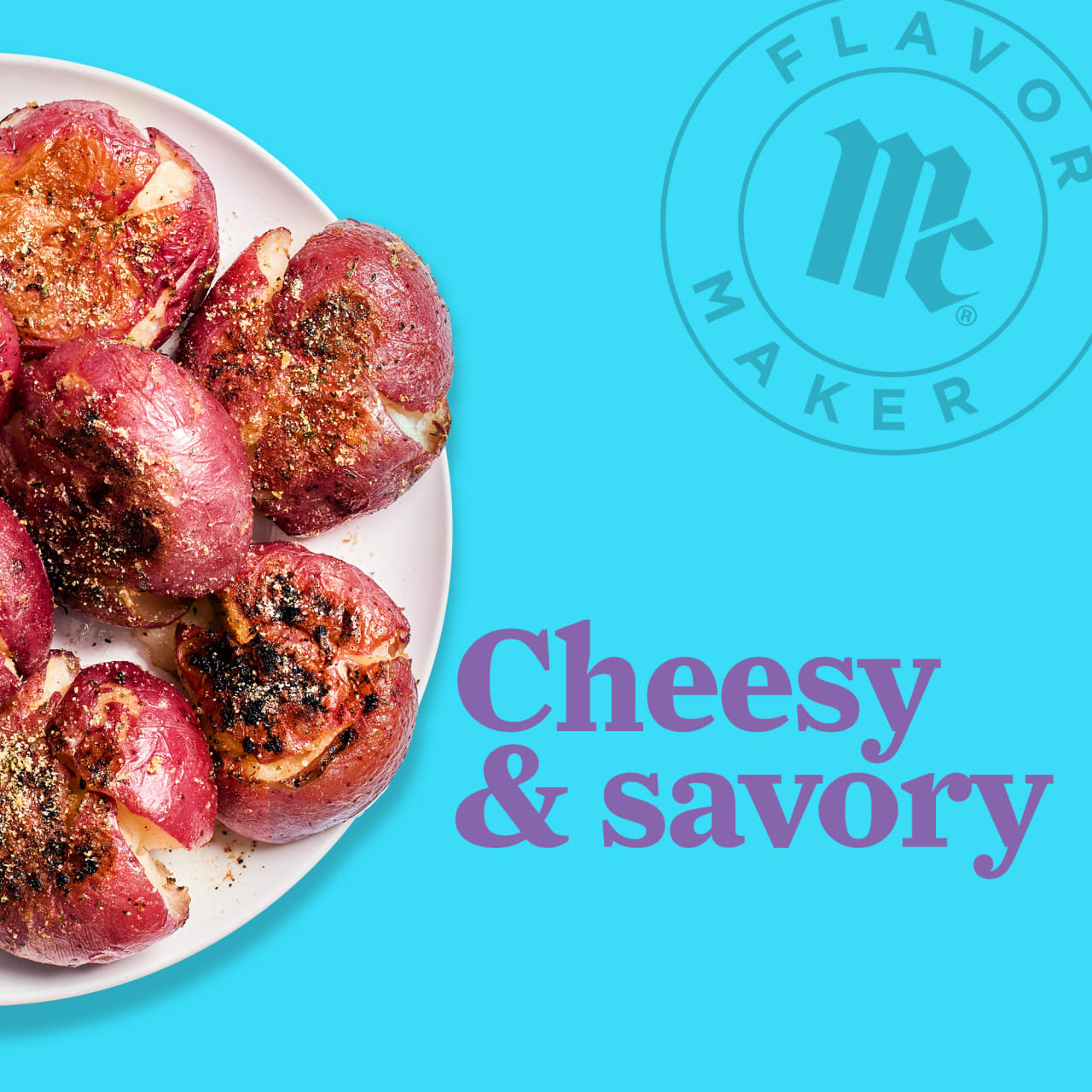 Treat your dishes to an absolute "spud” of a seasoning … McCormick® Flavor Maker Potato Topping Seasoning. Made with minimal ingredients, it delivers cheesy flavor to French fries, baked potatoes, hashbrowns, scalloped potatoes, or garlic bread while cooking or tableside. Pick a spud, any spud, and treat it to Potato Topping Seasoning. Simply flip the cap to pinch, pour, or shake, and enjoy. Featured in this easy recipe for Chicken and Smashed Potatoes, it's also a convenient way to season garlic bread. Prefer to flavor at the table? Pinch over meals for an extra pop of memorable flavor. With this all-in-one solution to inspired, everyday cooking, you'll be the best potato maker around.