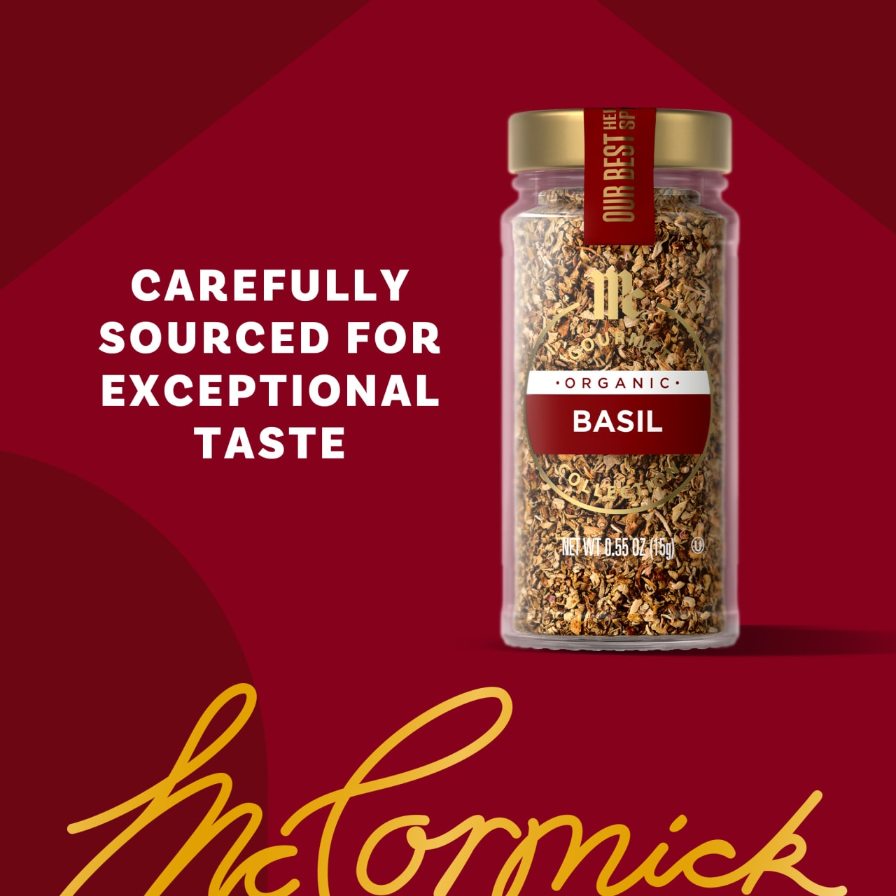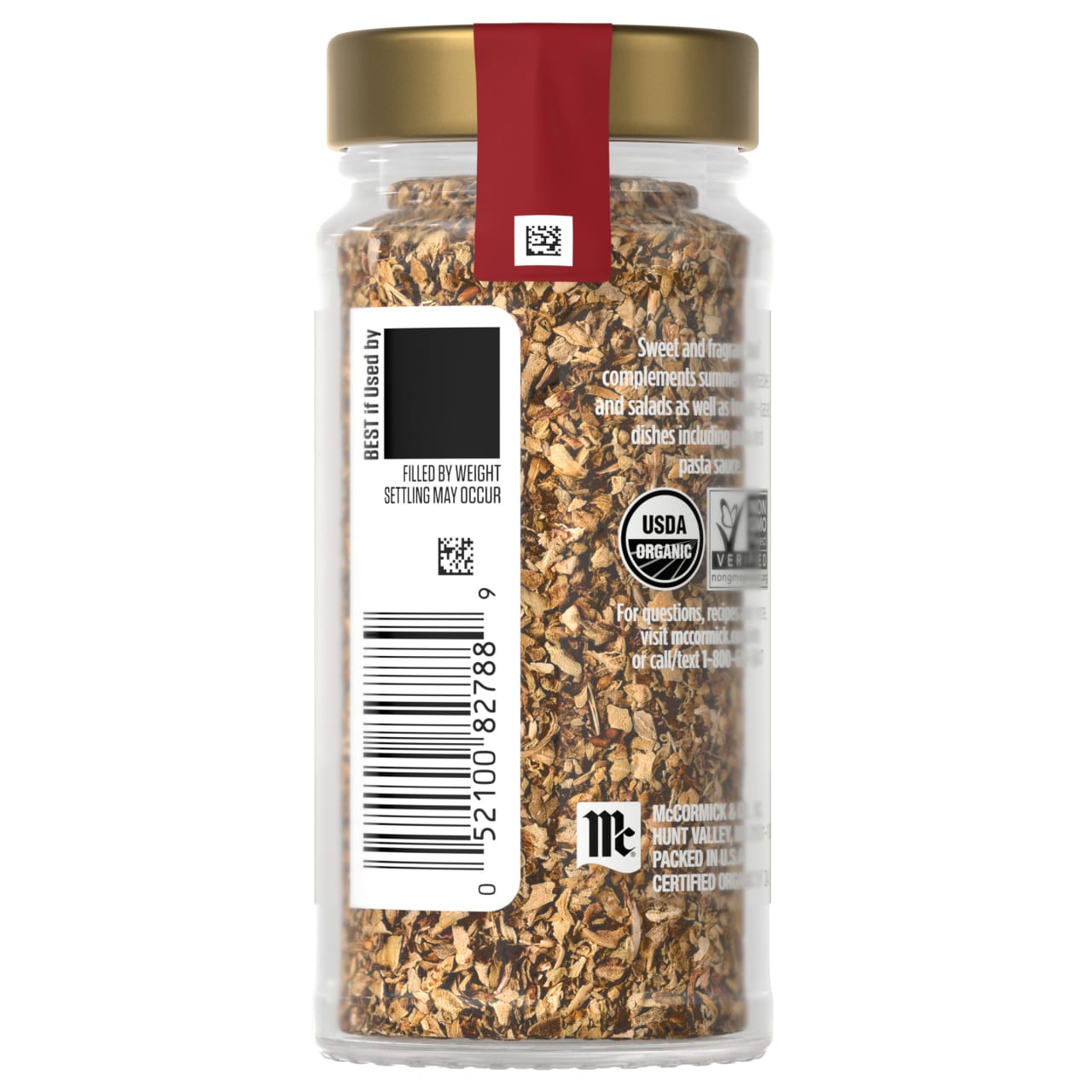 McCormick Gourmet™ Collection Organic Basil, Our Best Herbs & Spices, Sweet, Fragrant, Minty, Anise-Like Flavor, Elevate Grilled Meats, Vegetables, Salads & Seafood, Organic, Non GMO, Kosher, 0.55 oz Discover our finest flavors with the McCormick Gourmet™ Collection of our best herbs and spices — including McCormick Gourmet Collection Organic Basil. Basil brings exceptional taste to your table with its sweet flavor and fragrant aroma. McCormick Gourmet Collection Organic Basil is carefully sourced, harvested, and dried to retain its natural green color and fragrant sweetness. Essential to Italian cuisine, basil's minty, anise-like flavor elevates grilled meats and vegetables, salads, and seafood. Basil is also the perfect partner for enhancing tomato-based dishes, including slow-cooked marinara sauce, minestrone, fish soups, pizza, and braised pot roast.