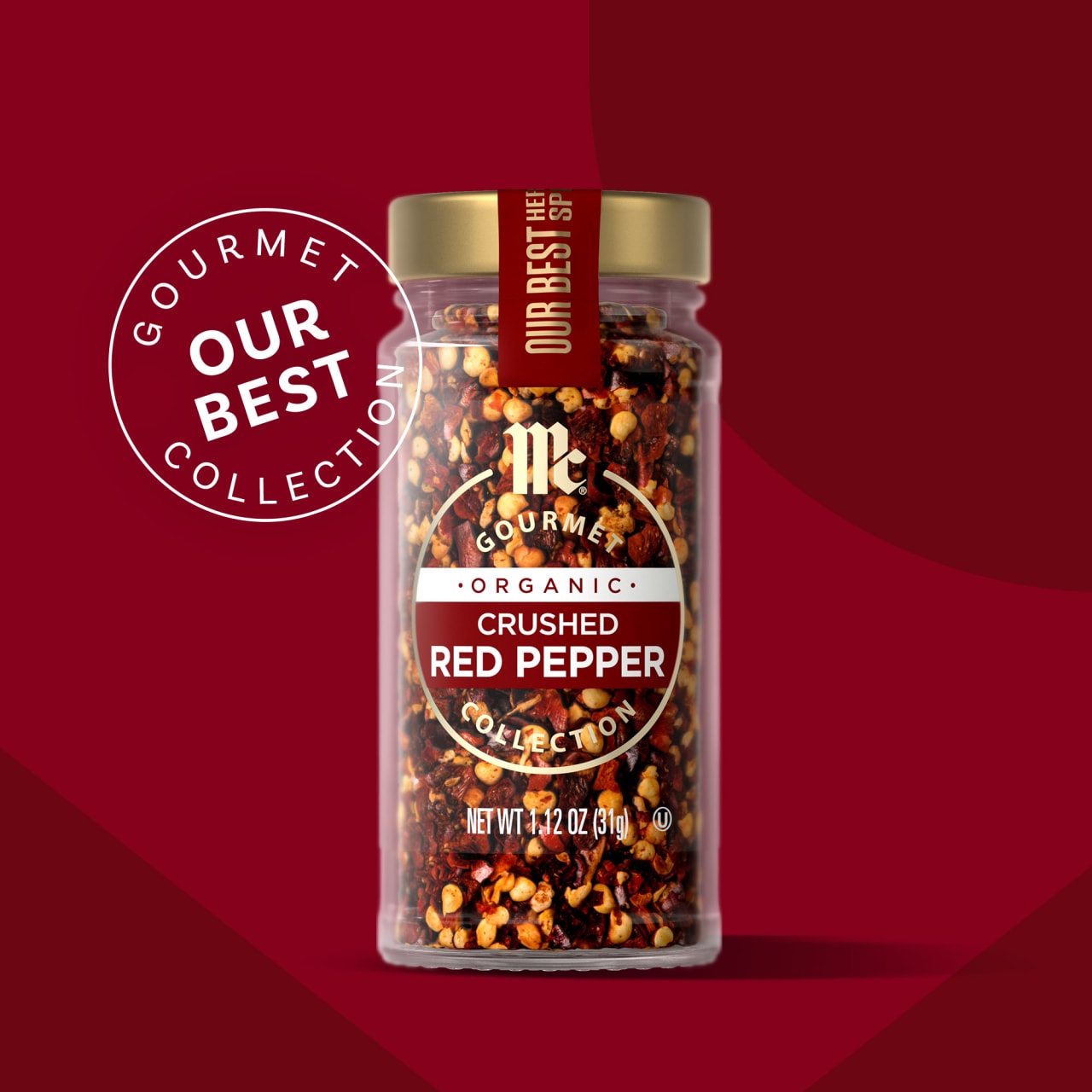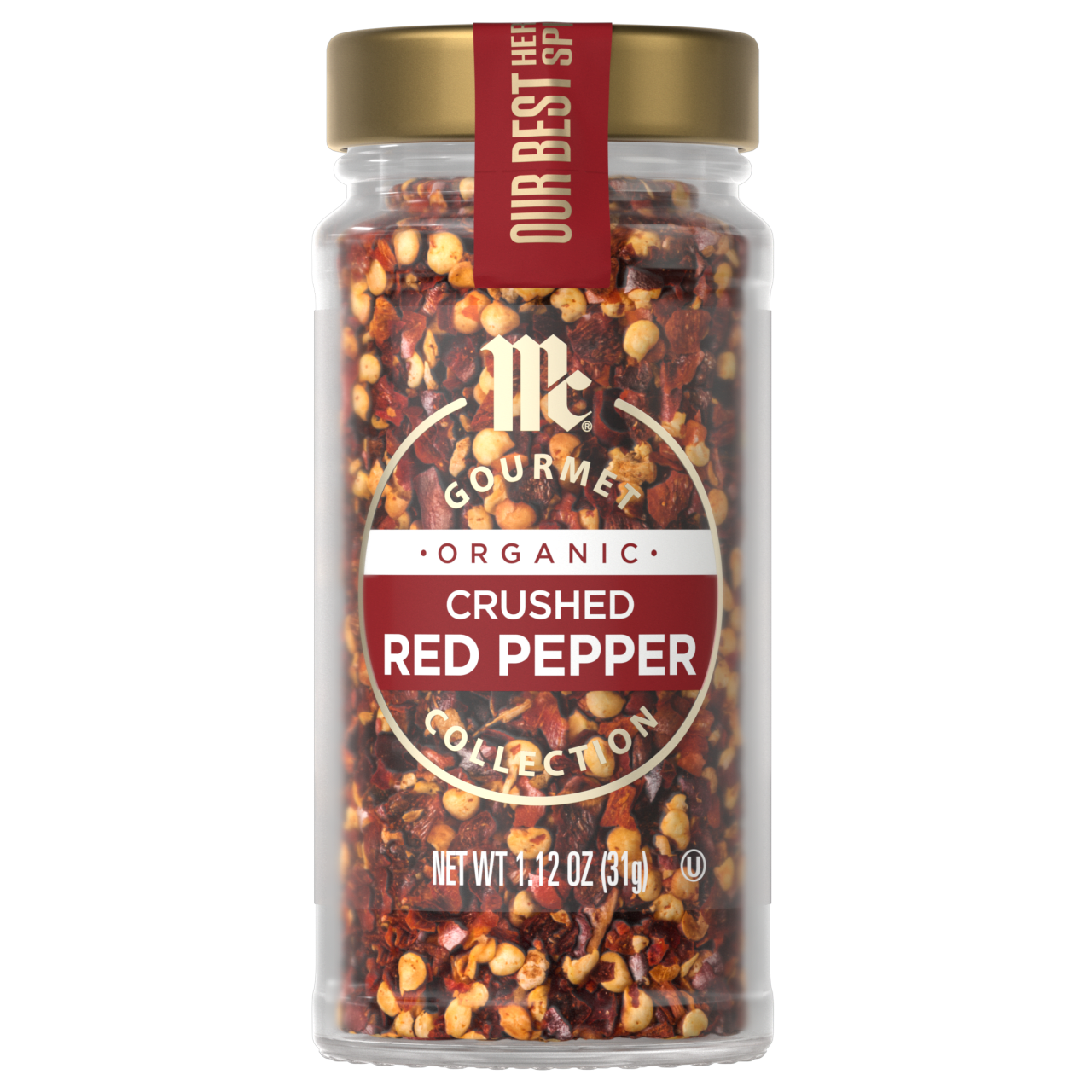 McCormick Gourmet Collection Organic Crushed Red Pepper is carefully sourced and flavor sealed for the most robust flavor possible. Elevate your cooking with bold heat, a sharp peppery bite, and intriguing texture. Just a dash will make your favorite dishes pop — think chili, stir-fries, pizza, pasta, and salad.
