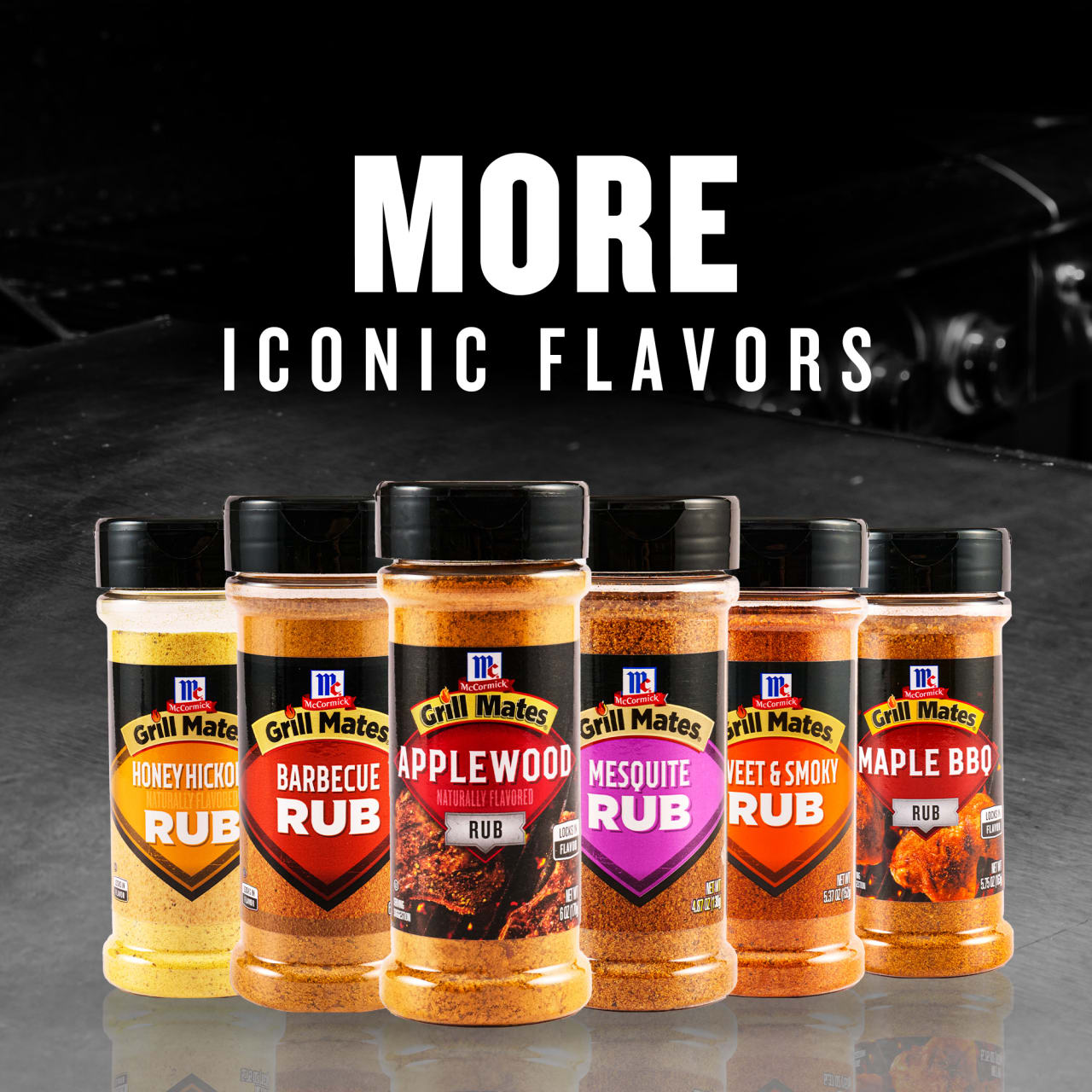 Grill Mates Applewood Rub is a smoky, savory and slightly sweet blend of garlic, peppers and applewood smoke. Win at the grill every time with Applewood Rub, America's #1 grilling seasoning. It serves one purpose: to intensify the taste of your favorite cuts with McCormick herbs and spices. The bottle is designed with a dual flip-cap to shake or sprinkle flavor with a wide mouth for a measuring spoon. Shake it onto pork, chicken, beef or seafood to create a flavor-loaded crust that seals in savory smokiness. Rub it on directly before grilling or leave it on overnight. As the meat cooks, the heat opens its pores -- so the flavor of the rub absorbs right in. The result is tender, juicy, next-level grilled meat.