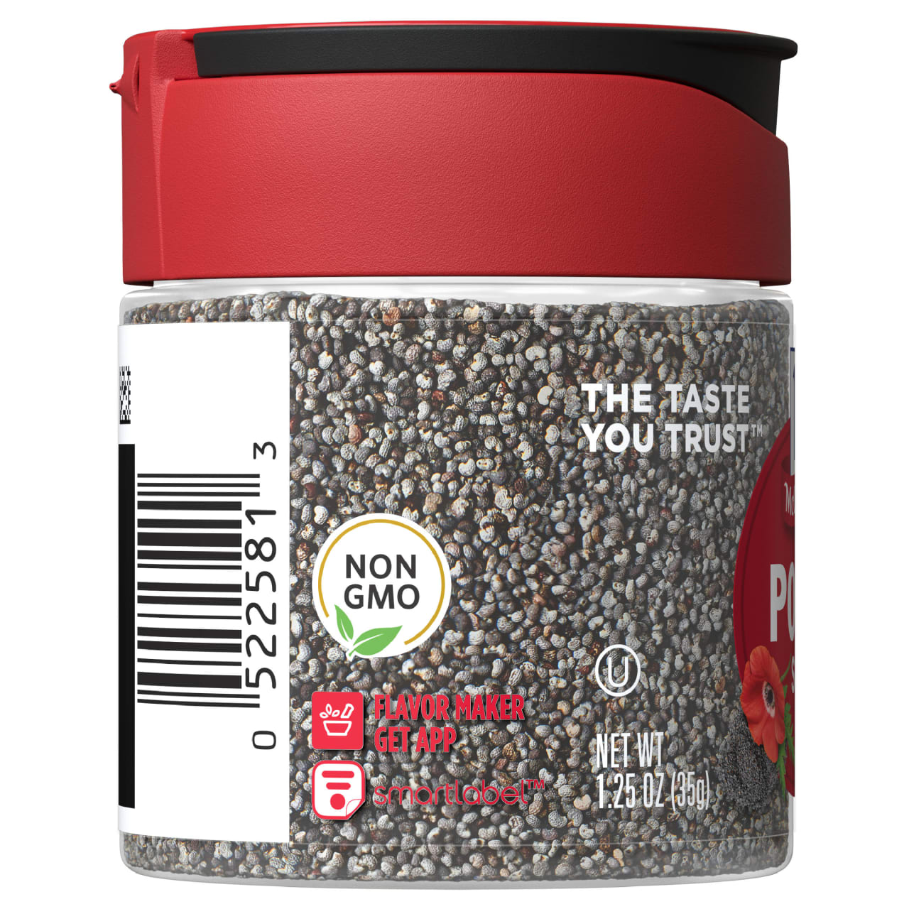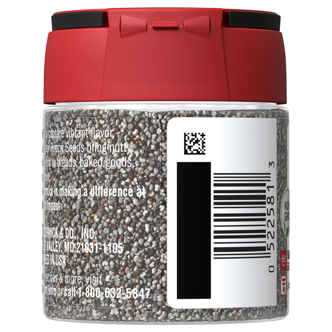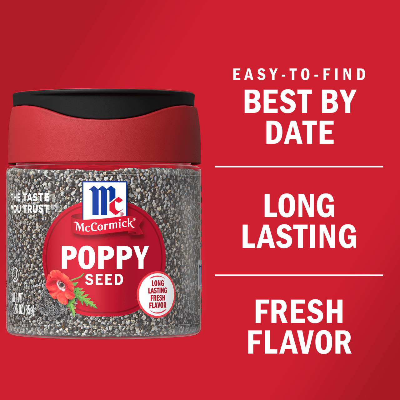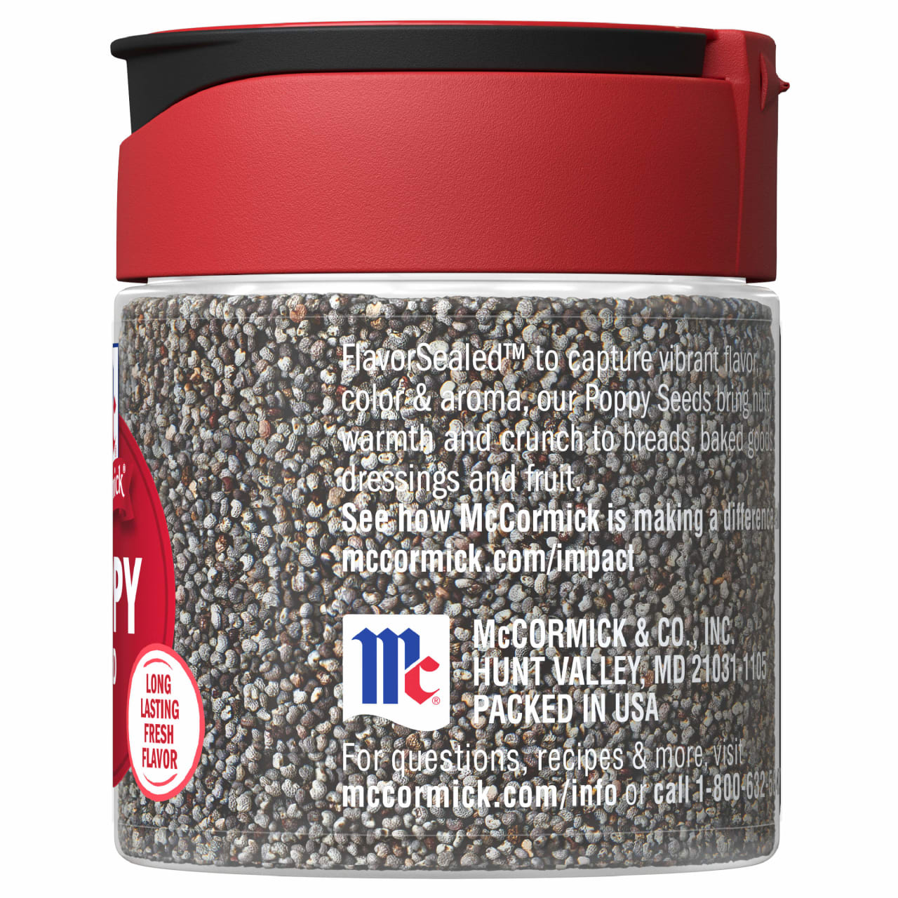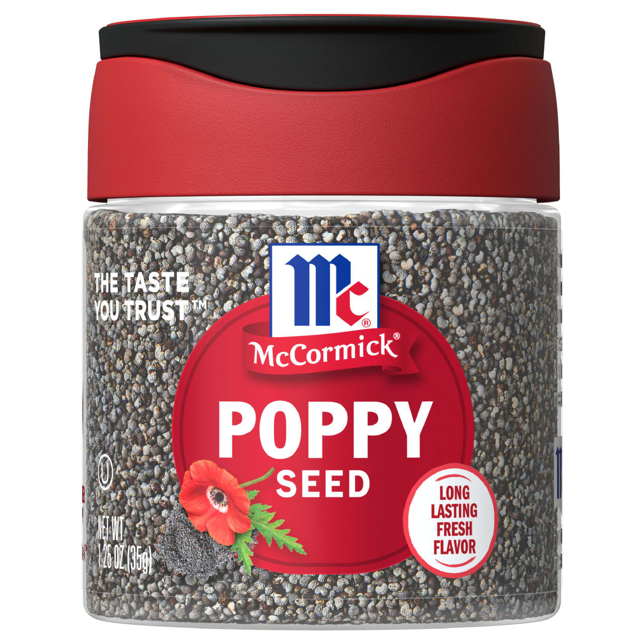 Native to the Mediterranean, the poppy plant produces showy, colorful flowers and tiny slate-blue seeds. At McCormick® our whole poppy seeds are selected for their nutty flavor and rich color- perfect for adding to breads, salad dressings and fruit. The appealing crunchy texture and mild nutty flavor make poppy seeds a favorite for sprinkling on rolls, pastries, pound cakes and cookies. Or stir them into the batter for breakfast muffins and pancakes. Poppy seeds add a pop of color when whisked into dressing for fruit, coleslaw or greens. Try poppy seed butter over noodles, rice, fish or potatoes. The seeds figure prominently in Eastern European, German and Turkish cuisines. Refrigerate or freeze your jar of poppy seeds to keep them fresh.